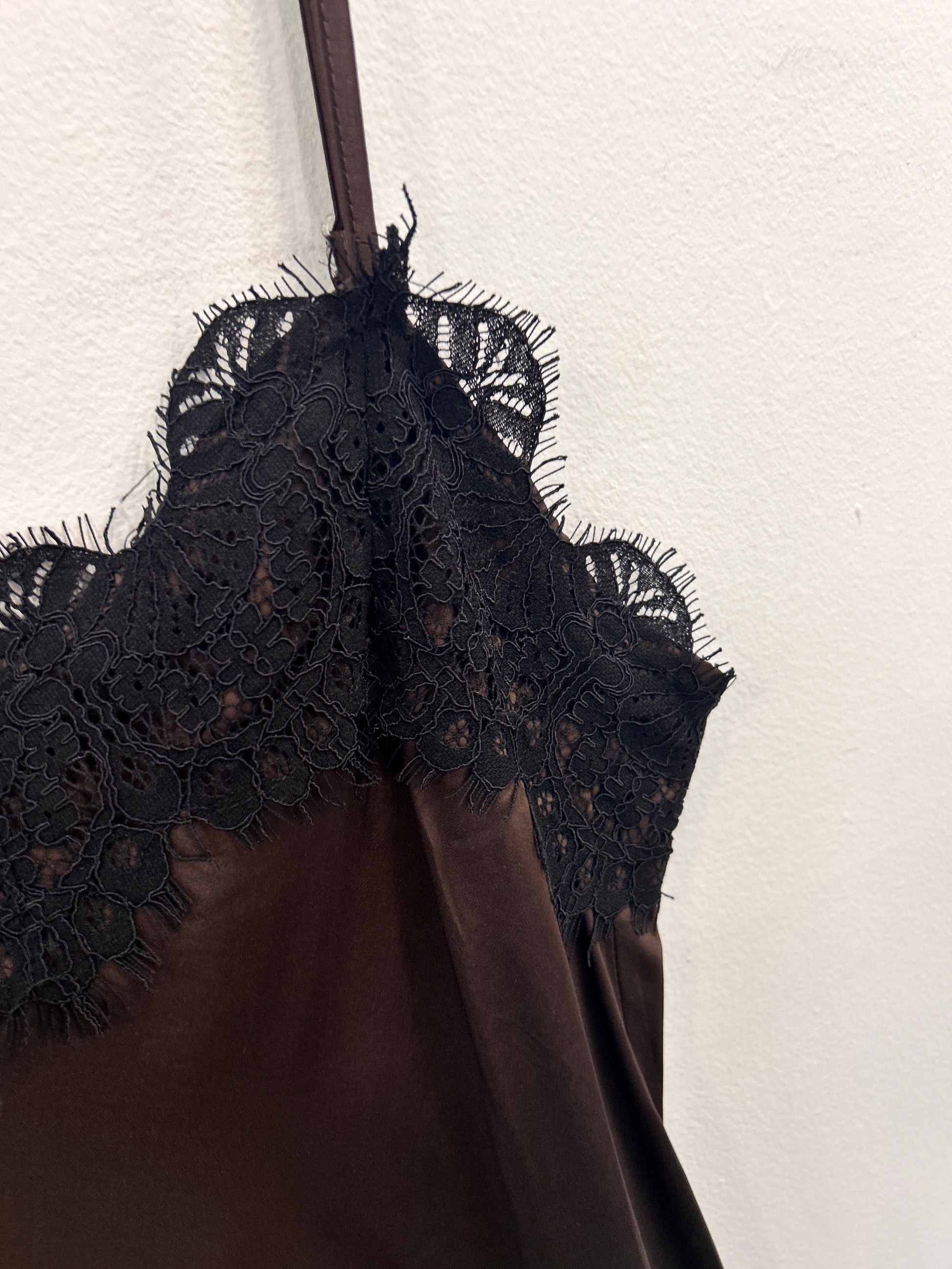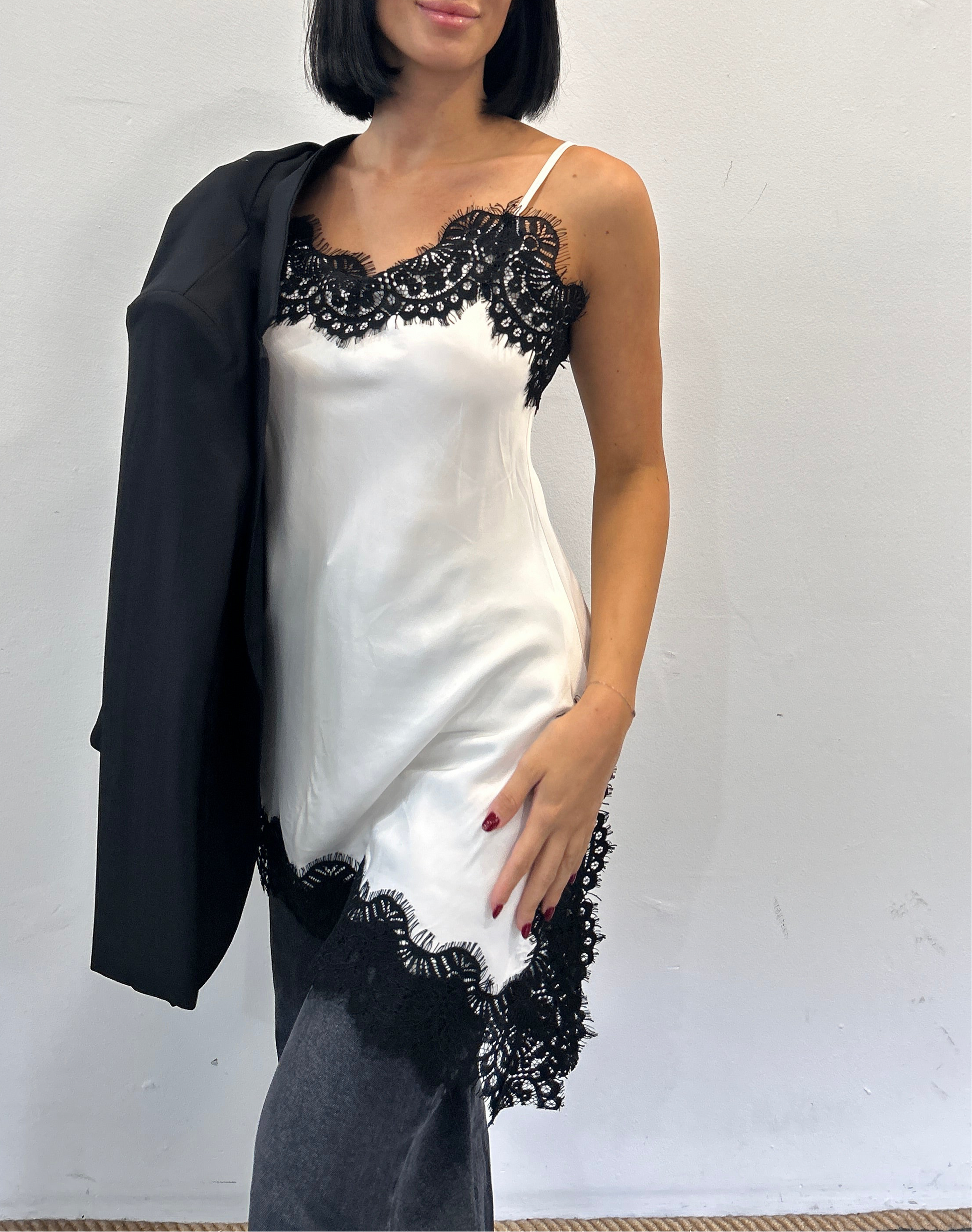 Questo abito a sottoveste in raso presenta una silhouette dritta che scivola con eleganza. Lo spacco laterale aggiunge un tocco di sensualità. Puoi indossarlo da solo per una serata speciale o abbinarlo a un cardigan o un blazer per un outfit più strutturato e di tendenza.