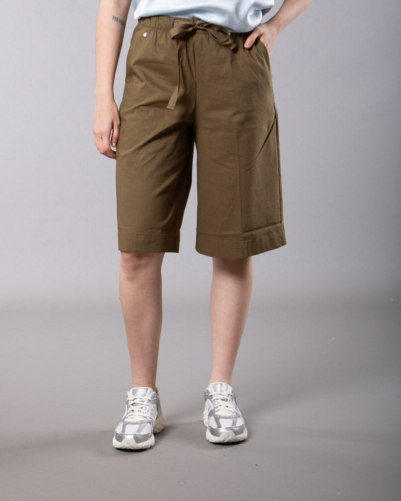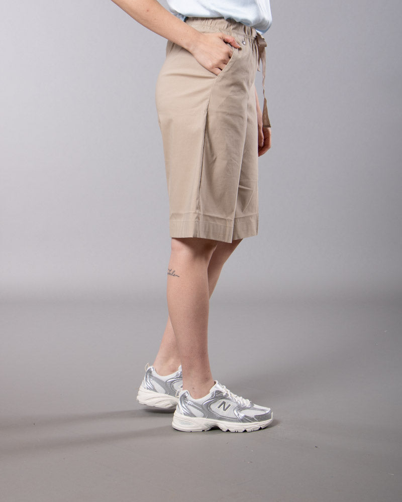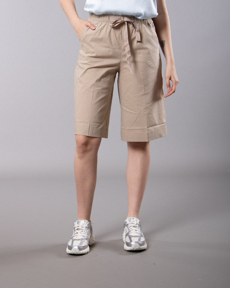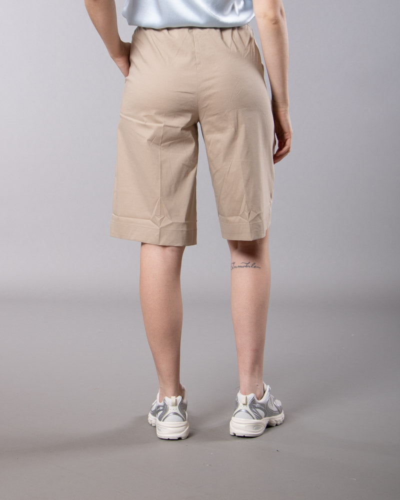 Modello bermuda. Vita elasticizzata. Coulisse tono su tono. Tasche laterali alla francese. Risvolto regolabile. Lavare max 30 gradi.