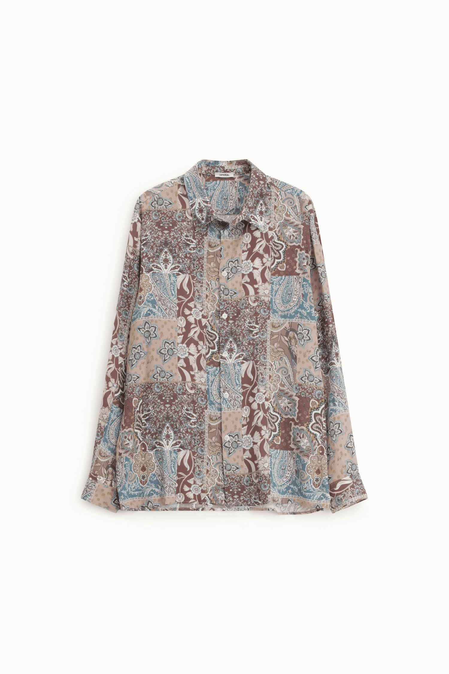 Questa camicia con stampa patchwork unisce motivi floreali e paisley in un design distintivo, ideale per chi ricerca uno stile personale e sofisticato. Il taglio regular fit valorizza la figura, mentre il collo classico e la chiusura a bottoni si completano con maniche lunghe. Perfetta per creare look originali e versatili.