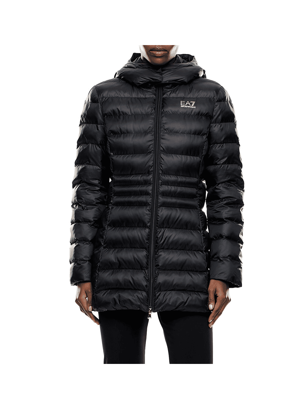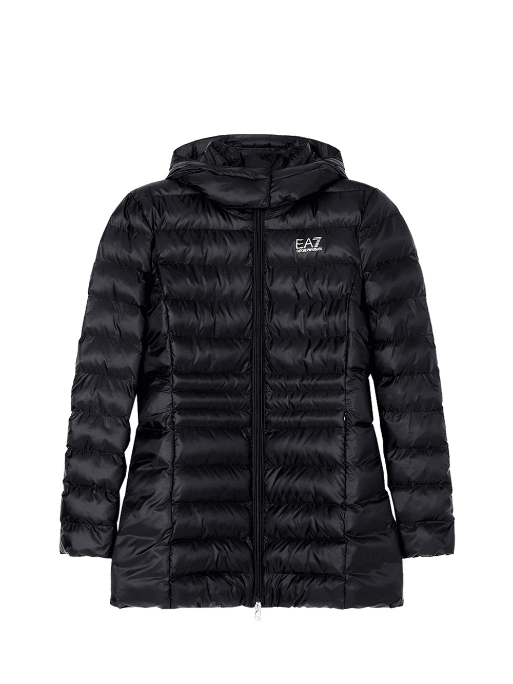 Caban con cappuccio realizzato in nylon con trattamento anti-vento e caratterizzato da una calda imbottitura. Il modello si distingue per il motivo impunture a righe orizzontali e per la personalizzazione con logo EA7 a contrasto sul petto. Un capo perfetto per look sportivi, dalla vestibilità confortevole.