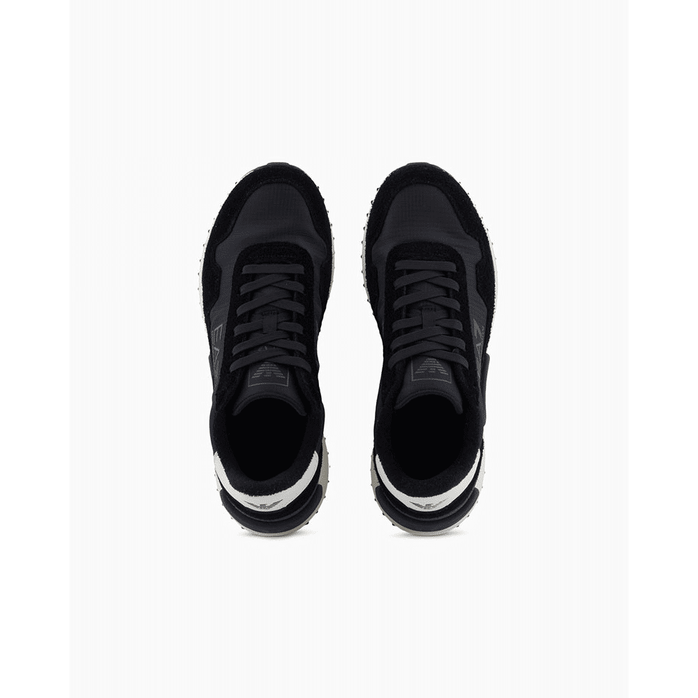 Sneakers EA7 Emporio Armani realizzate in camoscio, pelle tagliata dalla parte posteriore con fibre visibili in superficie, resistente e meno soggetta a danni rispetto al nabuk