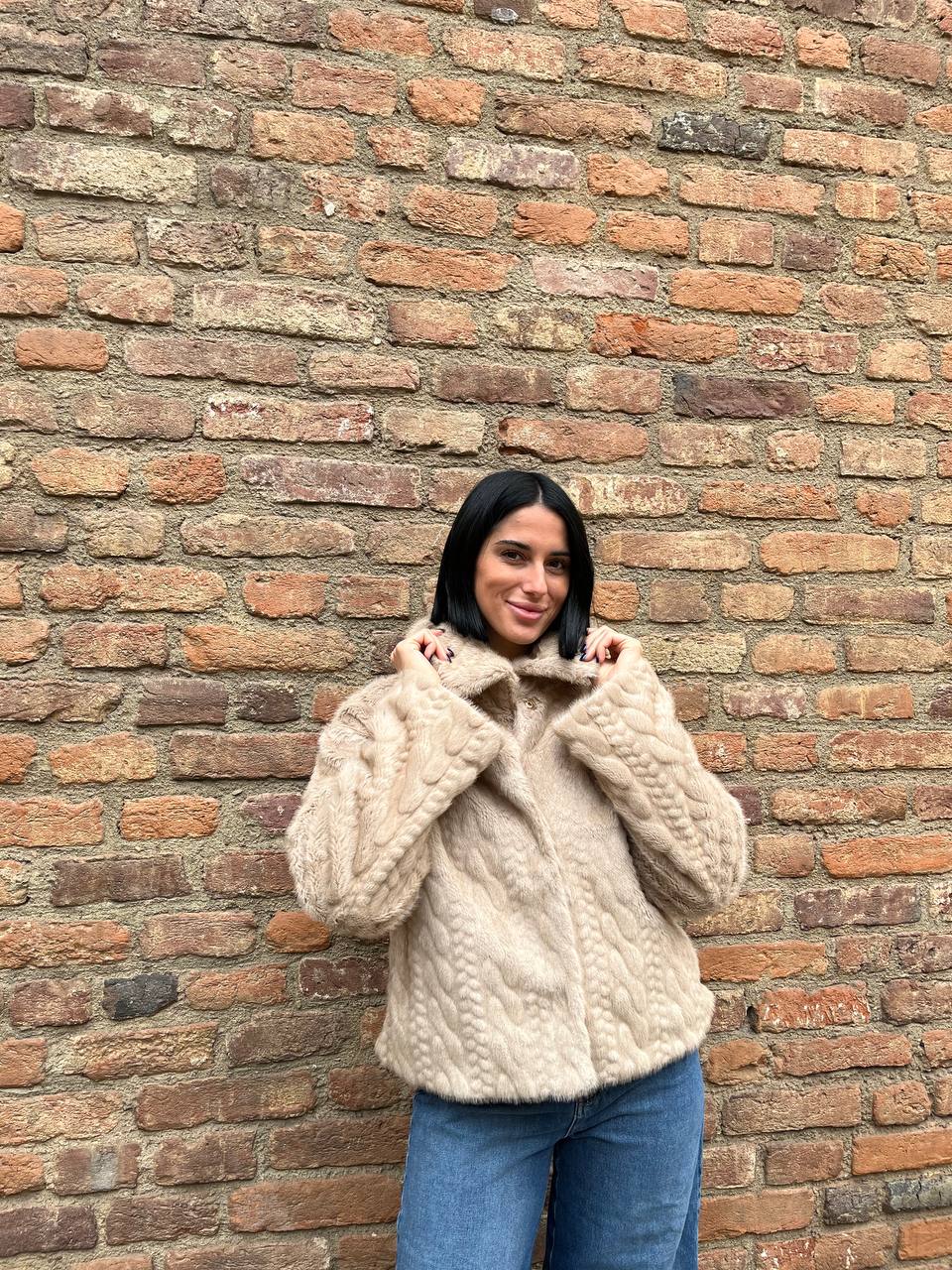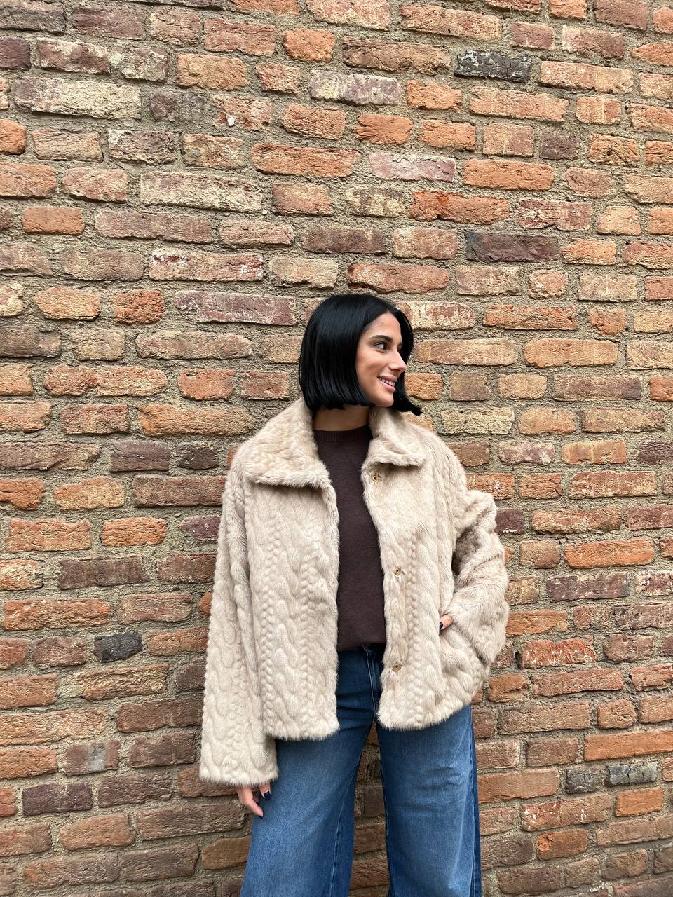 Ecopelliccia corta con motivo trecce Nevira