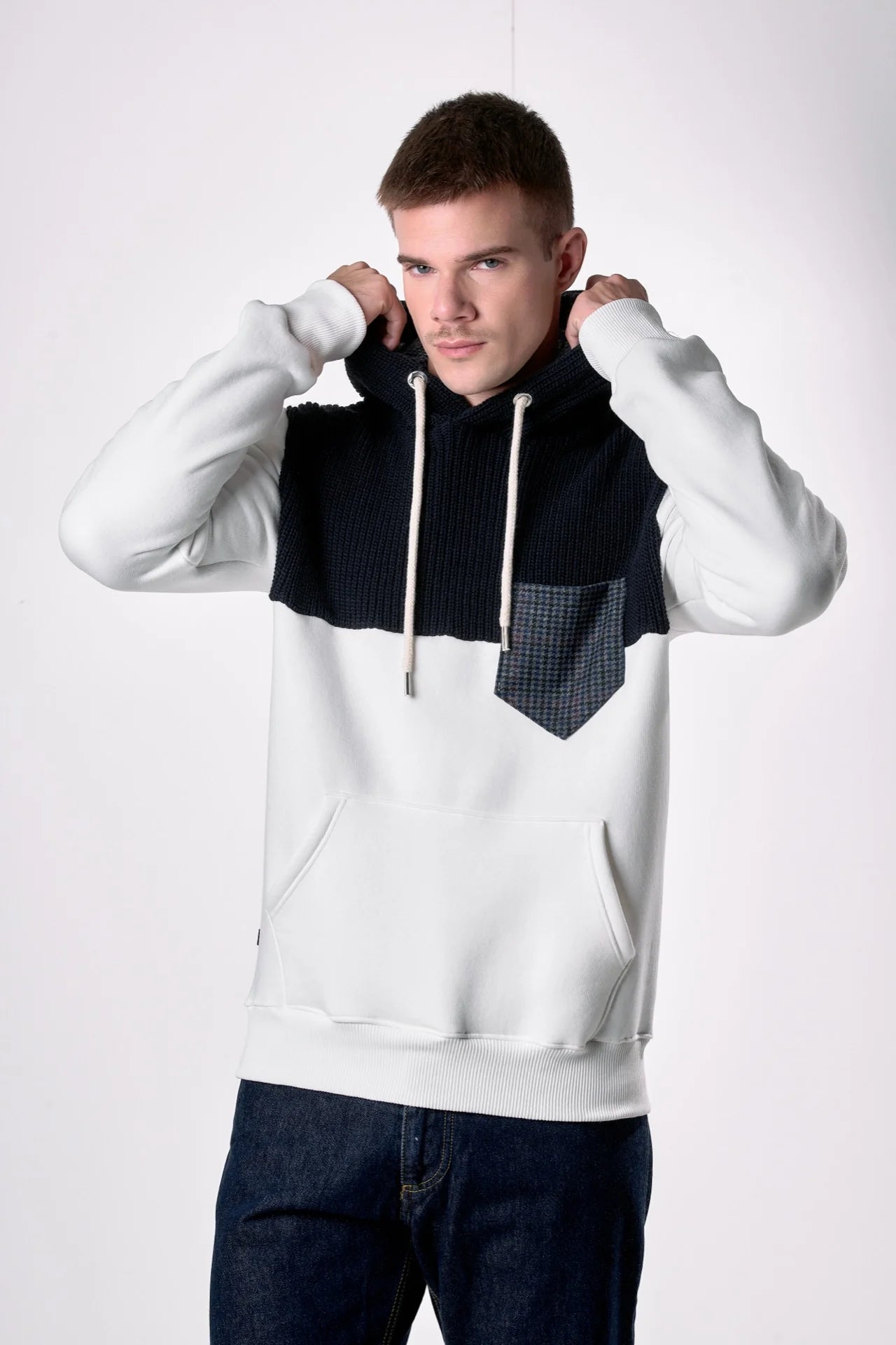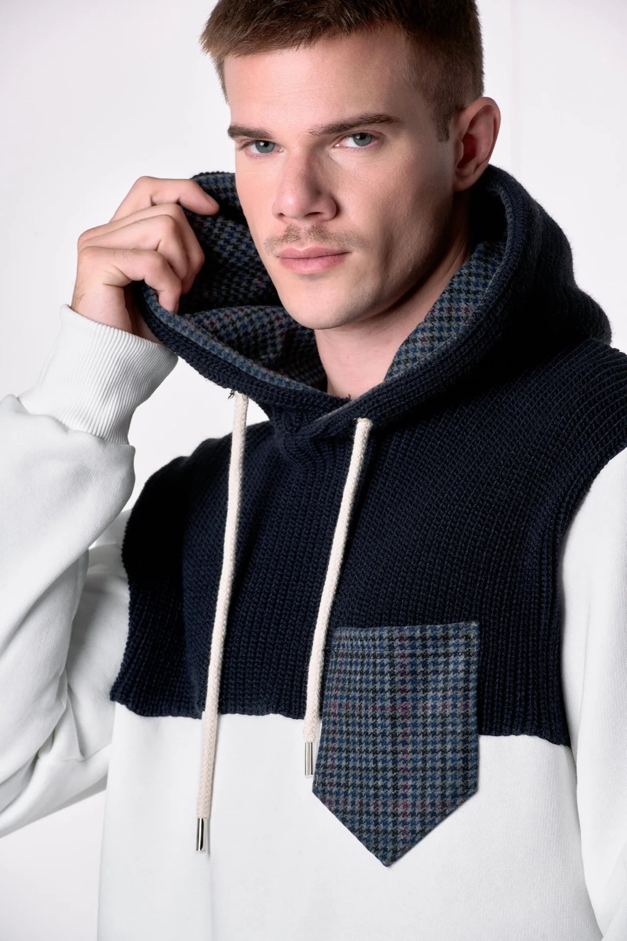 Felpa Cappuccio con intarsio in maglieria e dettagli in tessuto