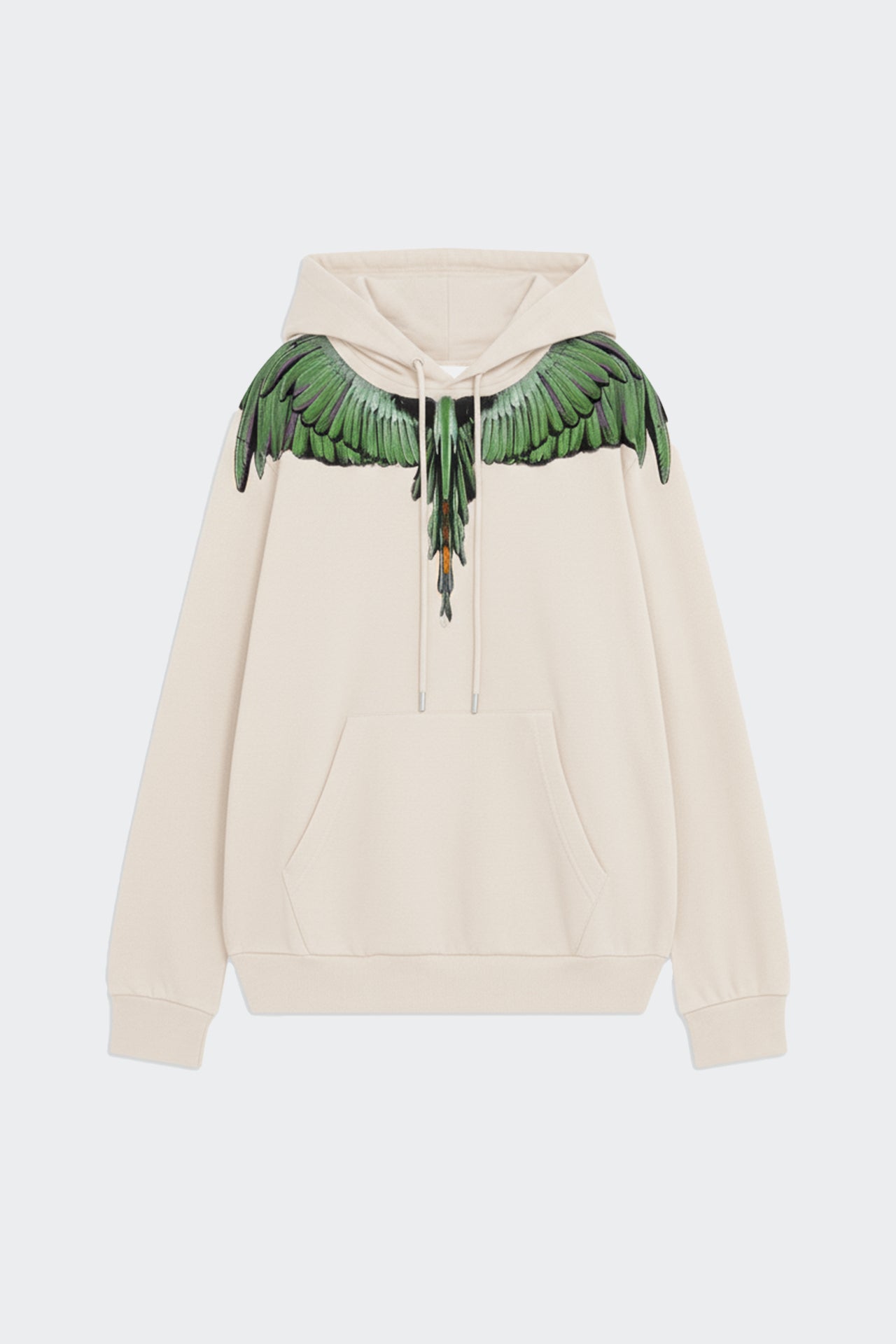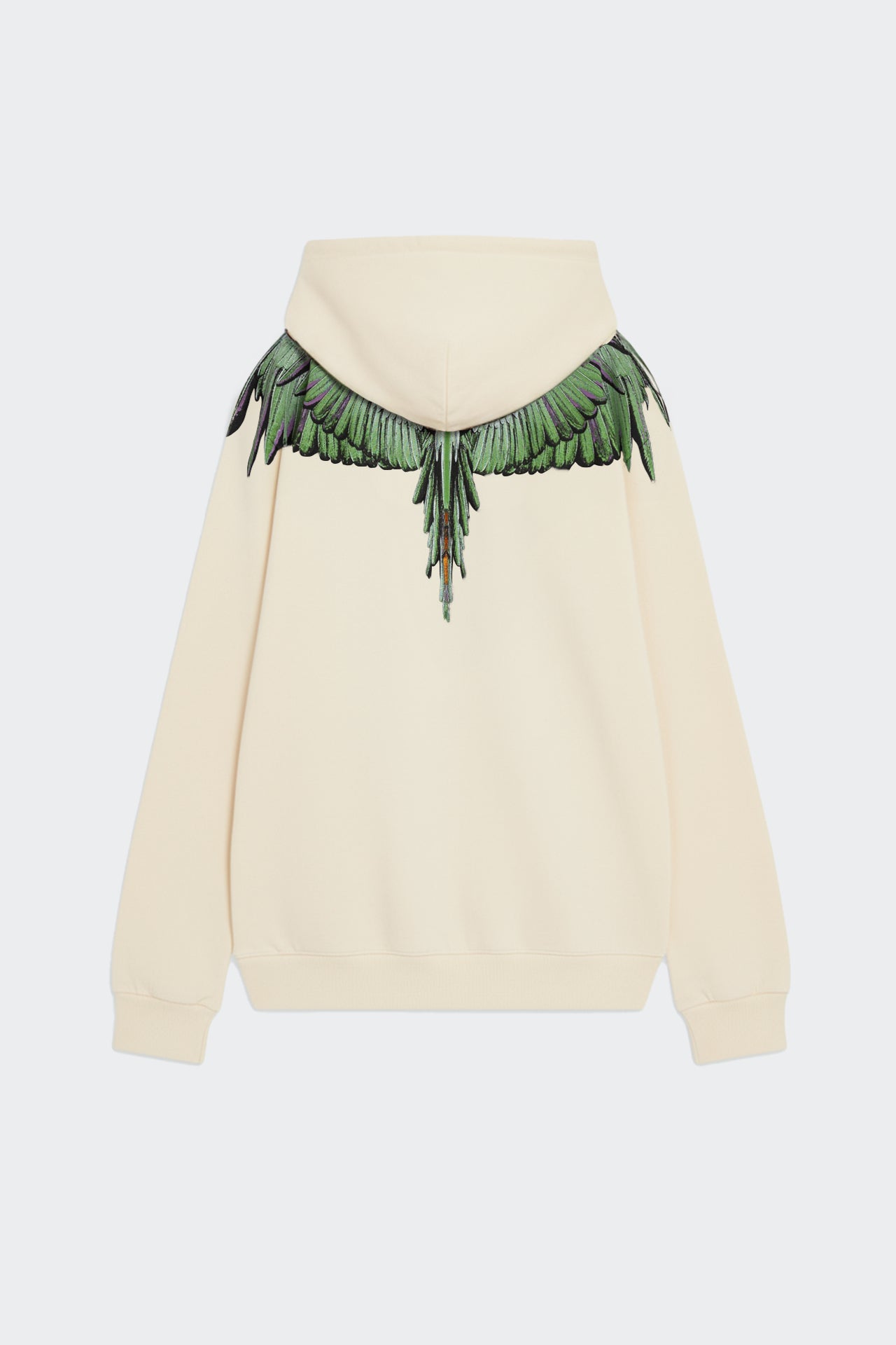 Felpa con cappuccio in cotone dal fit morbido, caratterizzata dall’iconica stampa “ali COUNTY OF MILAN” in tonalità verdi a contrasto. Dotata di cappuccio regolabile con coulisse, tasca a marsupio e finiture a costine su polsini e fondo. Etichetta 3D applicata sul fianco.