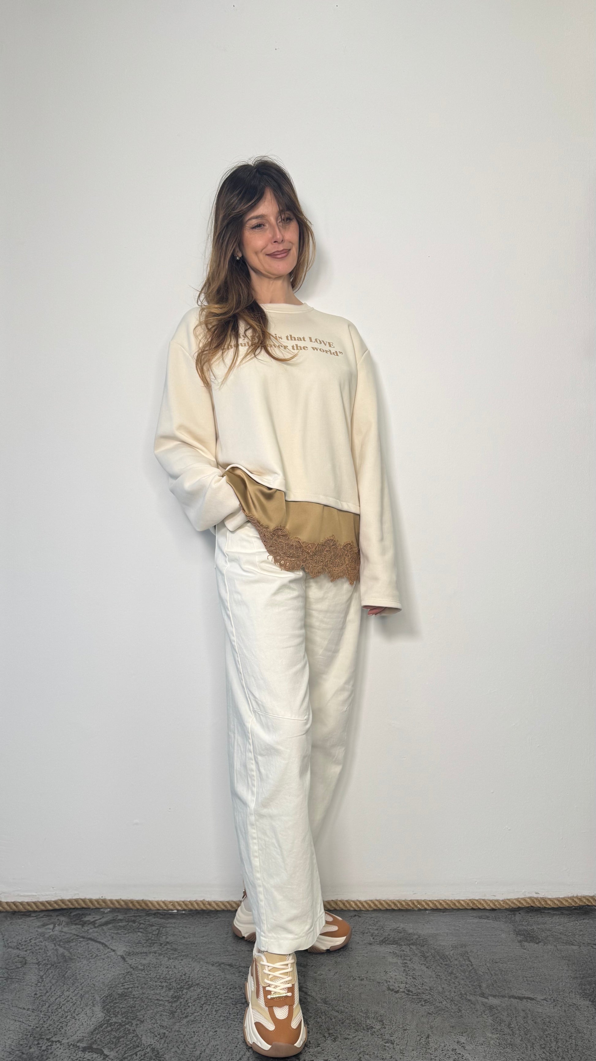 Felpa con stampa e bordo in pizzo Alma
