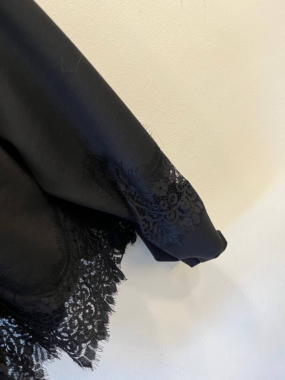 Questa felpa combina lo stile sportivo del girocollo con un tocco di eleganza. Caratterizzata da una vestibilità morbida e confortevole, presenta un inserto di pizzo elaborato e smerlato che sporge sul fondo e sui polsini, trasformando un capo casual in un pezzo chic. Ideale per un look che unisce comfort e raffinatezza.