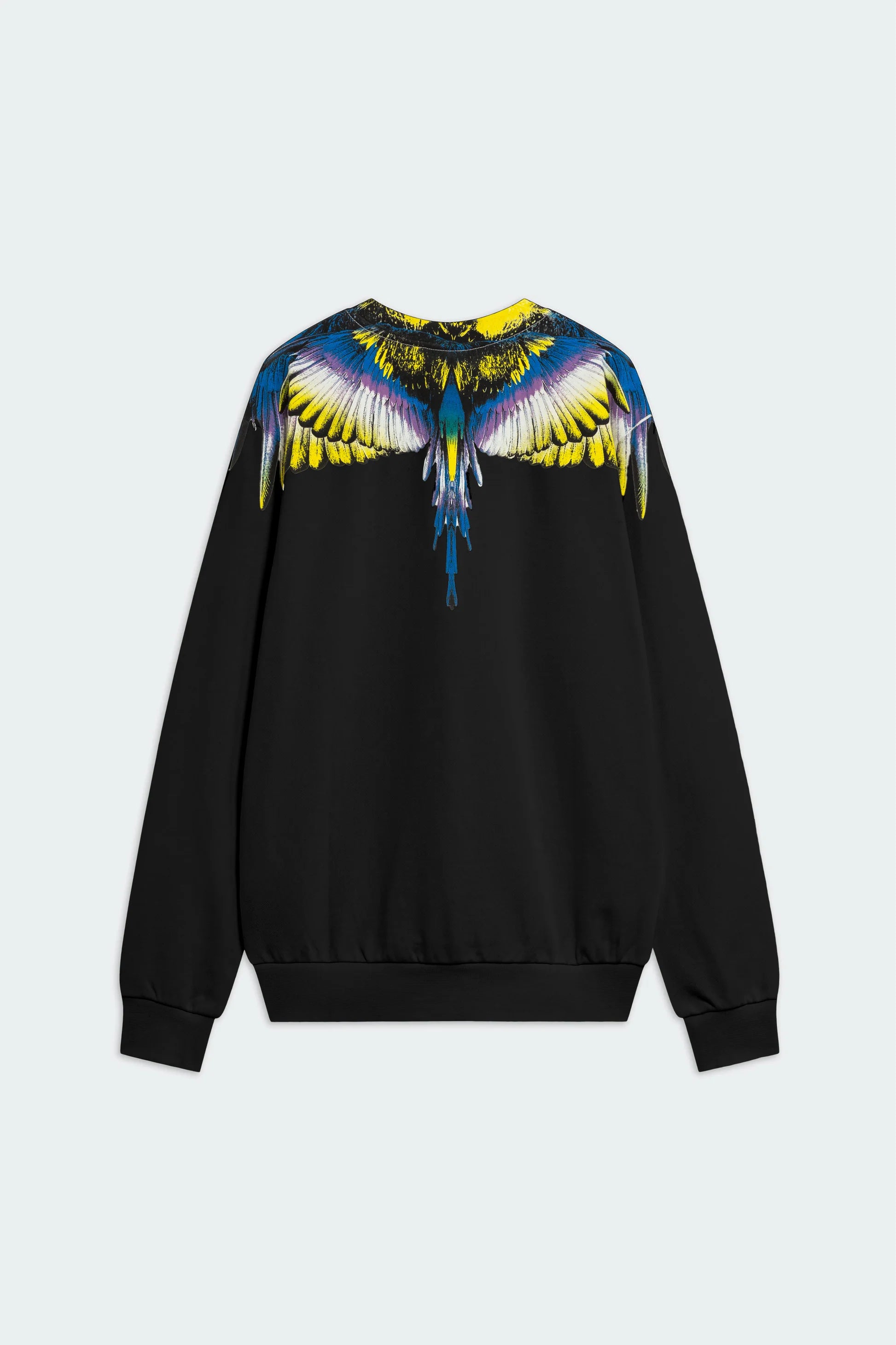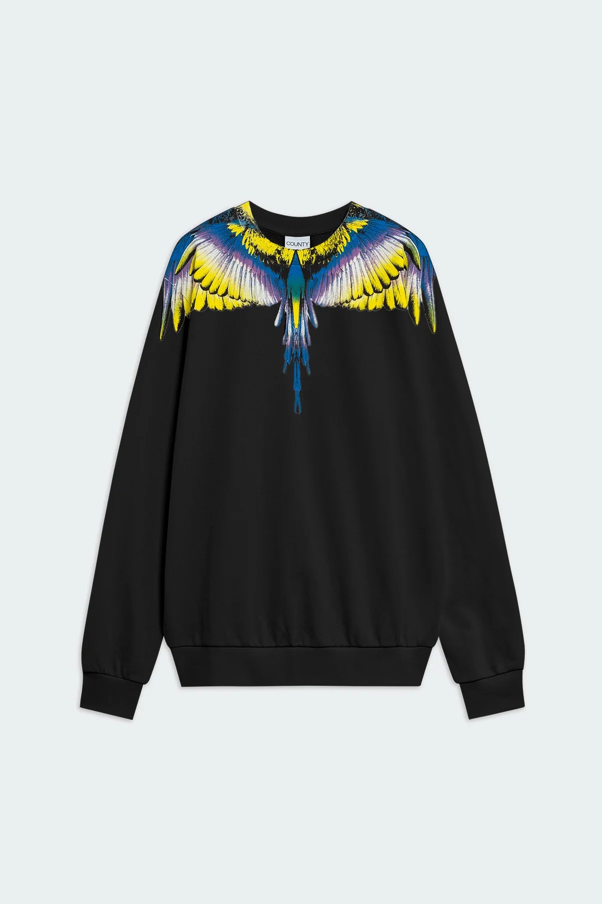 Felpa girocollo in cotone, caratterizzata dall’iconica stampa “ali COUNTY OF MILAN” multicolore a contrasto. Rifinita con collo, polsini e fondo a costine. Etichetta 3D applicata sul lato.