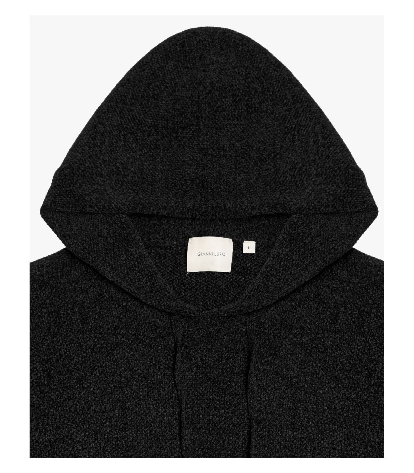 Cappuccio con coulisse - ciniglia elasticizzata e morbida - tasca a marsupio - orlo e polsini a coste