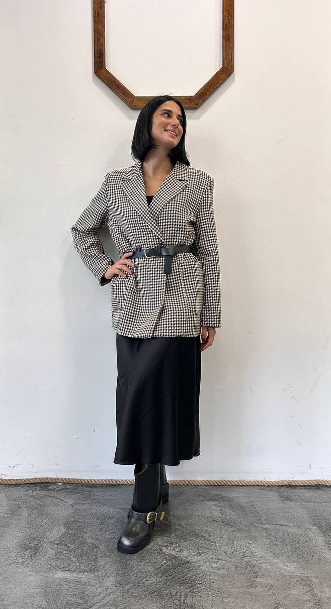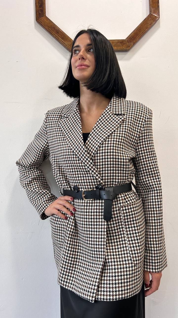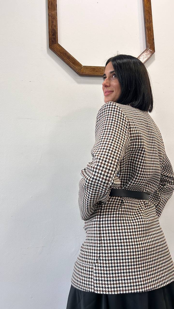 Giacca doppiopetto pied de poule con cinturina Brisalia