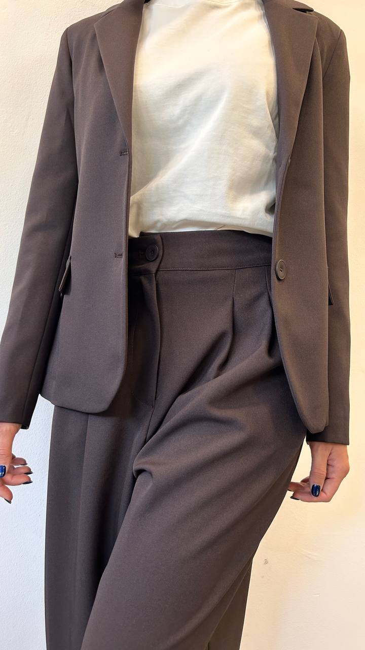 Giacca classica a due bottoni con taglio sartoriale e linea pulita. La vestibilità è regolare, leggermente strutturata sulle spalle e sagomata in vita, ideale per valorizzare la silhouette. Un capo essenziale e versatile, perfetto per look formali o per dare un tocco elegante a outfit più casual.