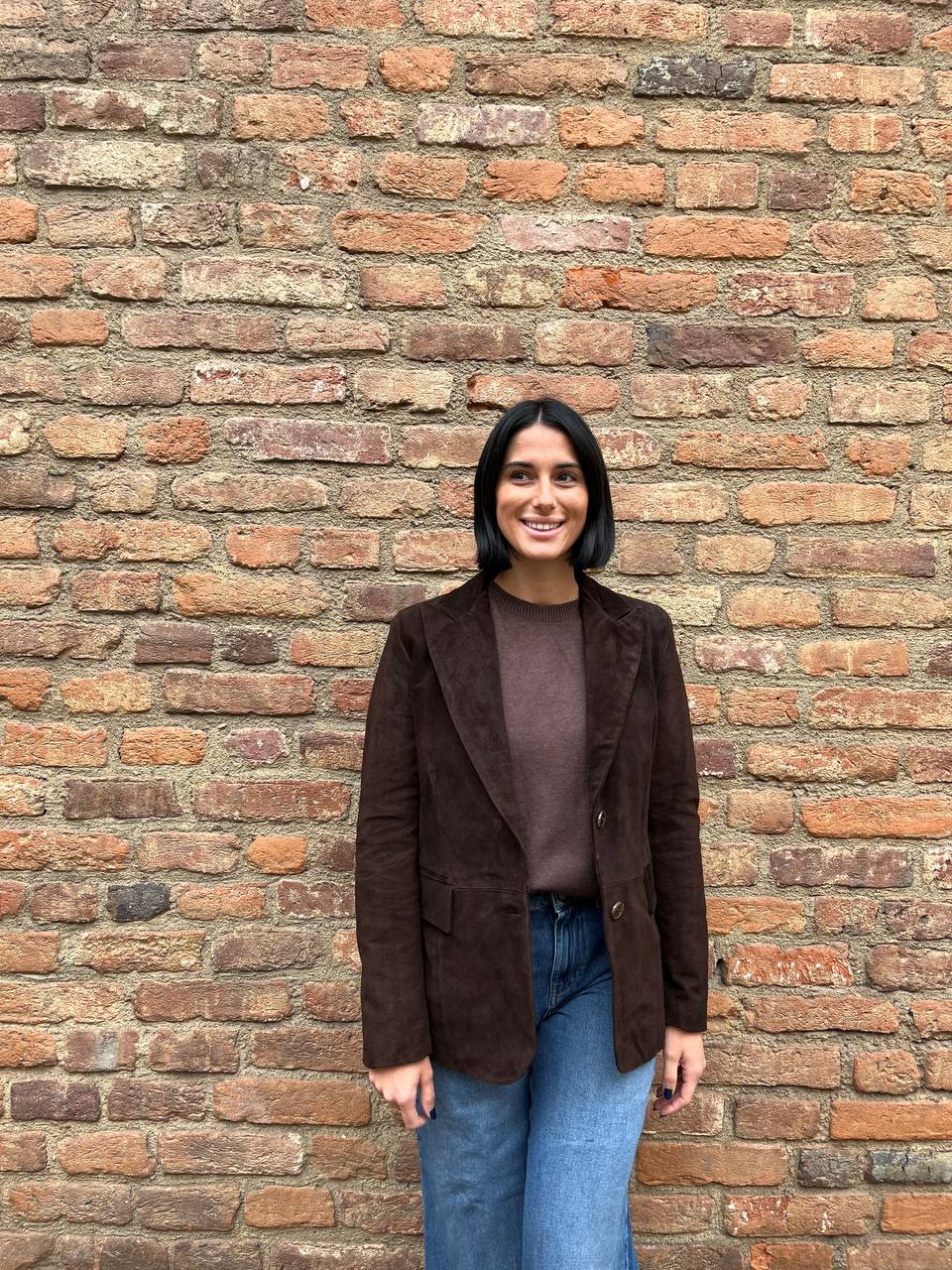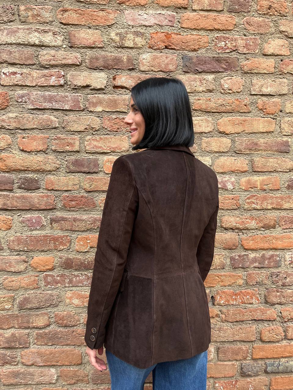 Giacca in crosta di pelle dal taglio raffinato, caratterizzata da una chiusura con due bottoni che dona al capo un’eleganza classica e senza tempo. Le tasche, funzionali e ben integrate nel design, aggiungono praticità, mentre l’interno completamente foderato assicura comfort e vestibilità ottimale. Le spalline leggermente imbottite conferiscono struttura alla silhouette, valorizzando la linea delle spalle con discrezione. Un capo versatile e sofisticato, ideale per completare con stile sia look formali che casual.