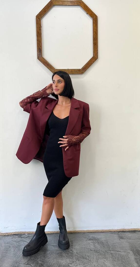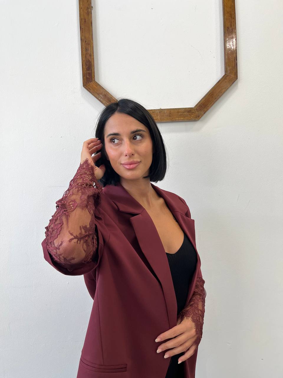 Giacca over con manica in pizzo Papavero