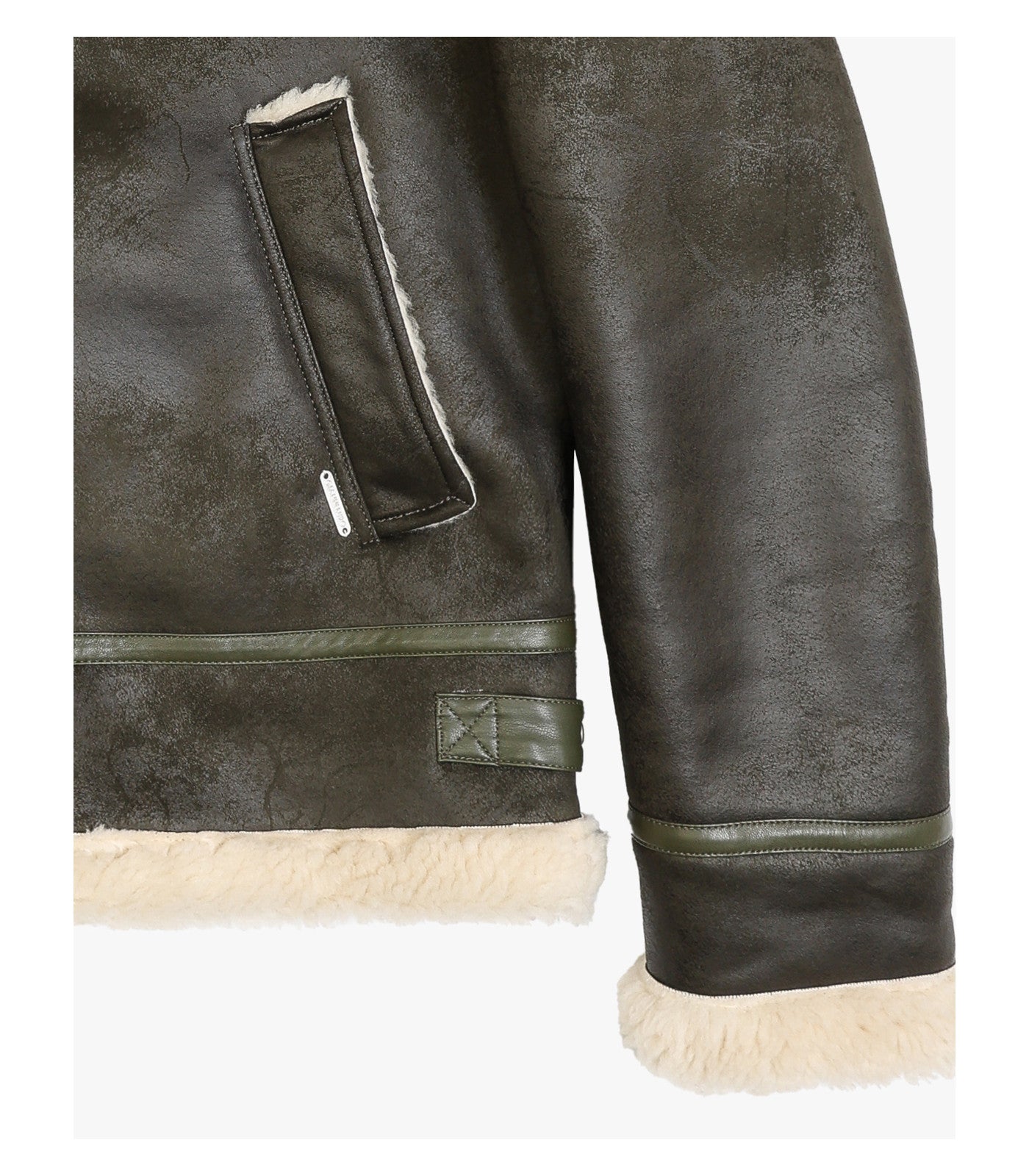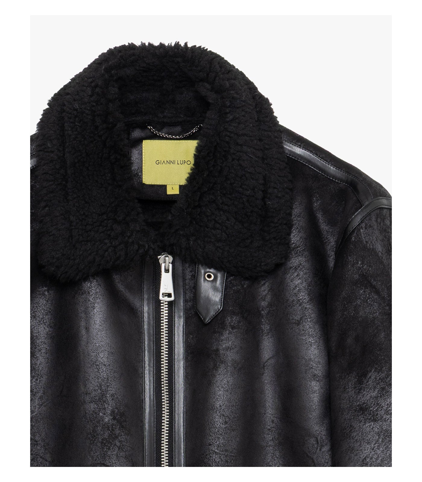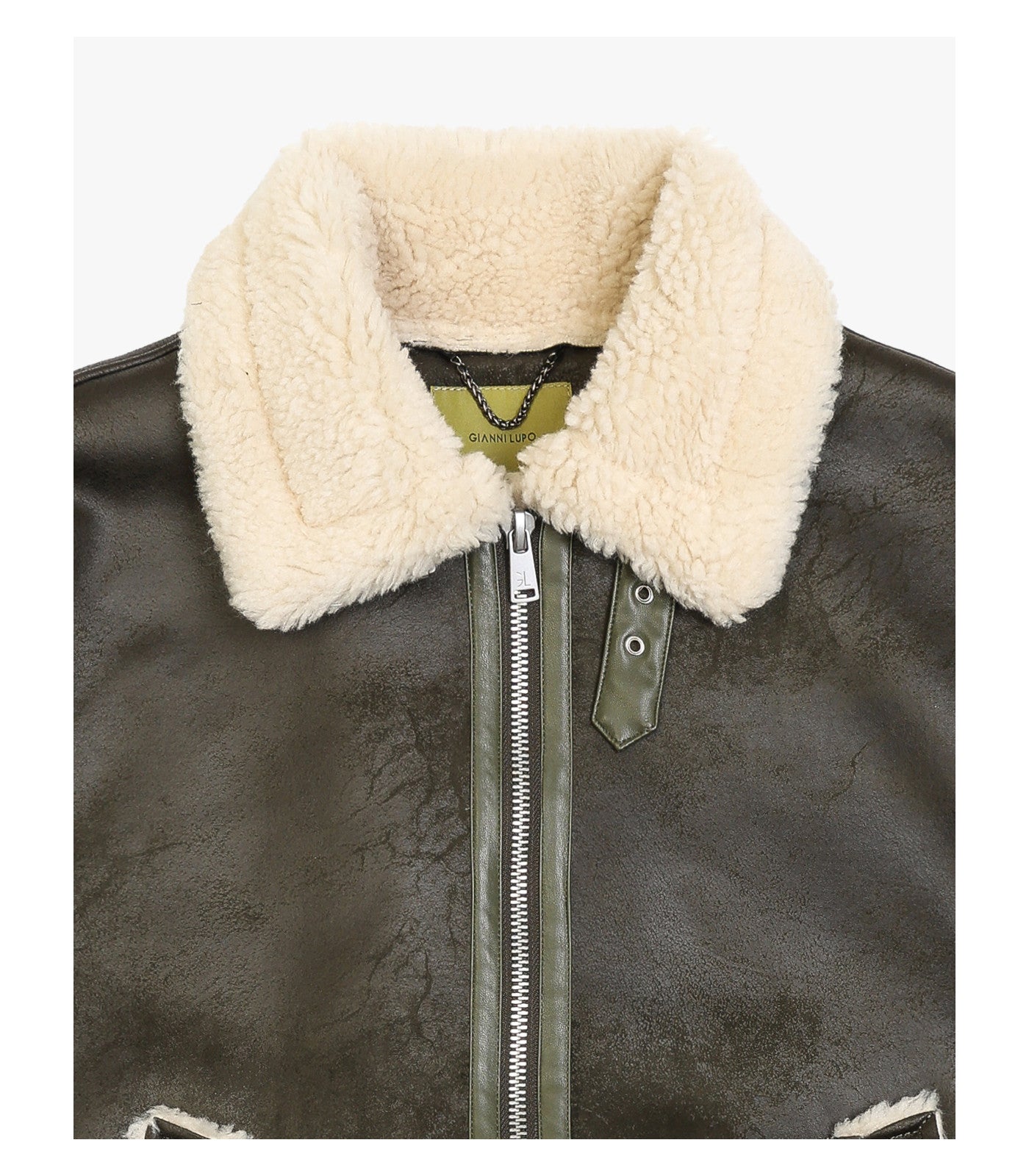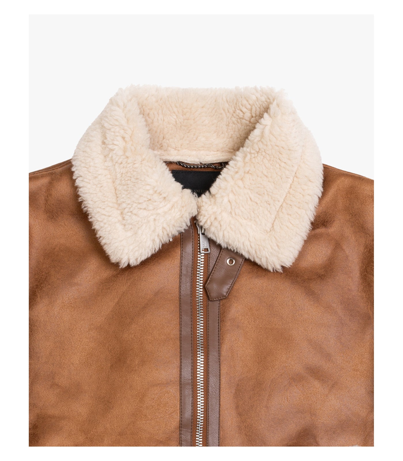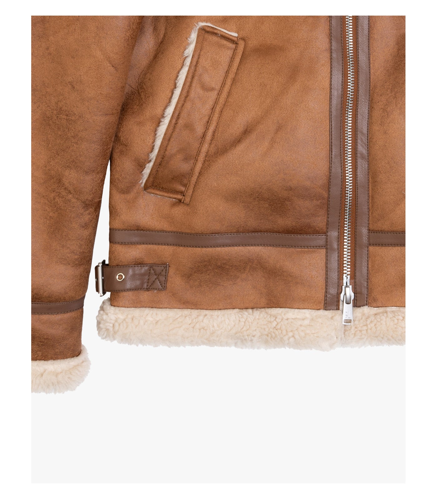 Collo ampio in pelliccia effetto montone - chiusura con zip a doppio cursore - tasche laterali inclinate - interno e bordi rifiniti in shearling a contrasto - polsi e fondo con dettagli effetto montone