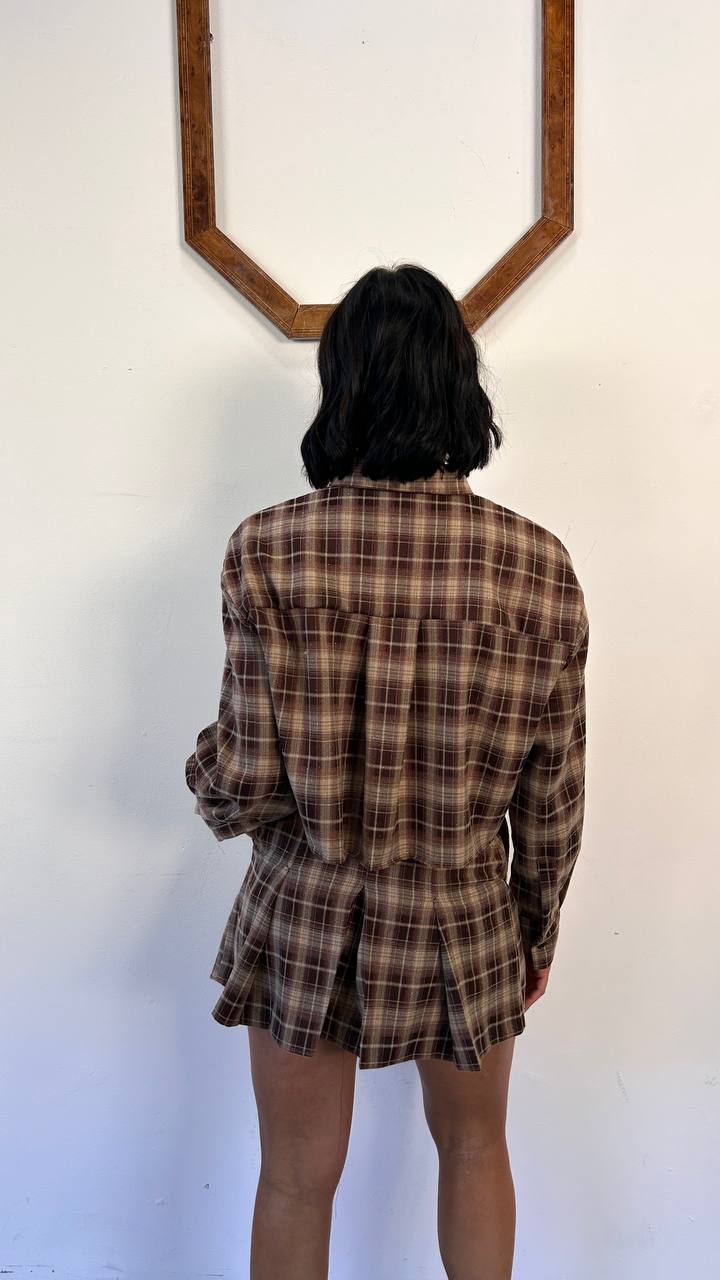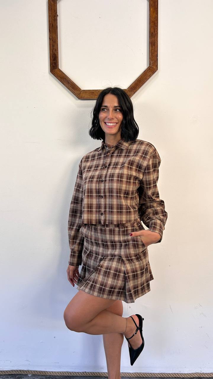 Questa minigonna a pieghe è un capo versatile e giocoso, perfetto per un look giovane e alla moda. Caratterizzata da un'elegante stampa a quadri, presenta una silhouette svasata e pieghe ampie che donano movimento.