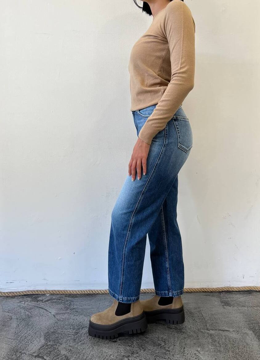 Jeans a vita alta straight fit. Modello cinque tasche. Taglio cropped. Chiusura frontale con zip e bottone. Leggere scambiature