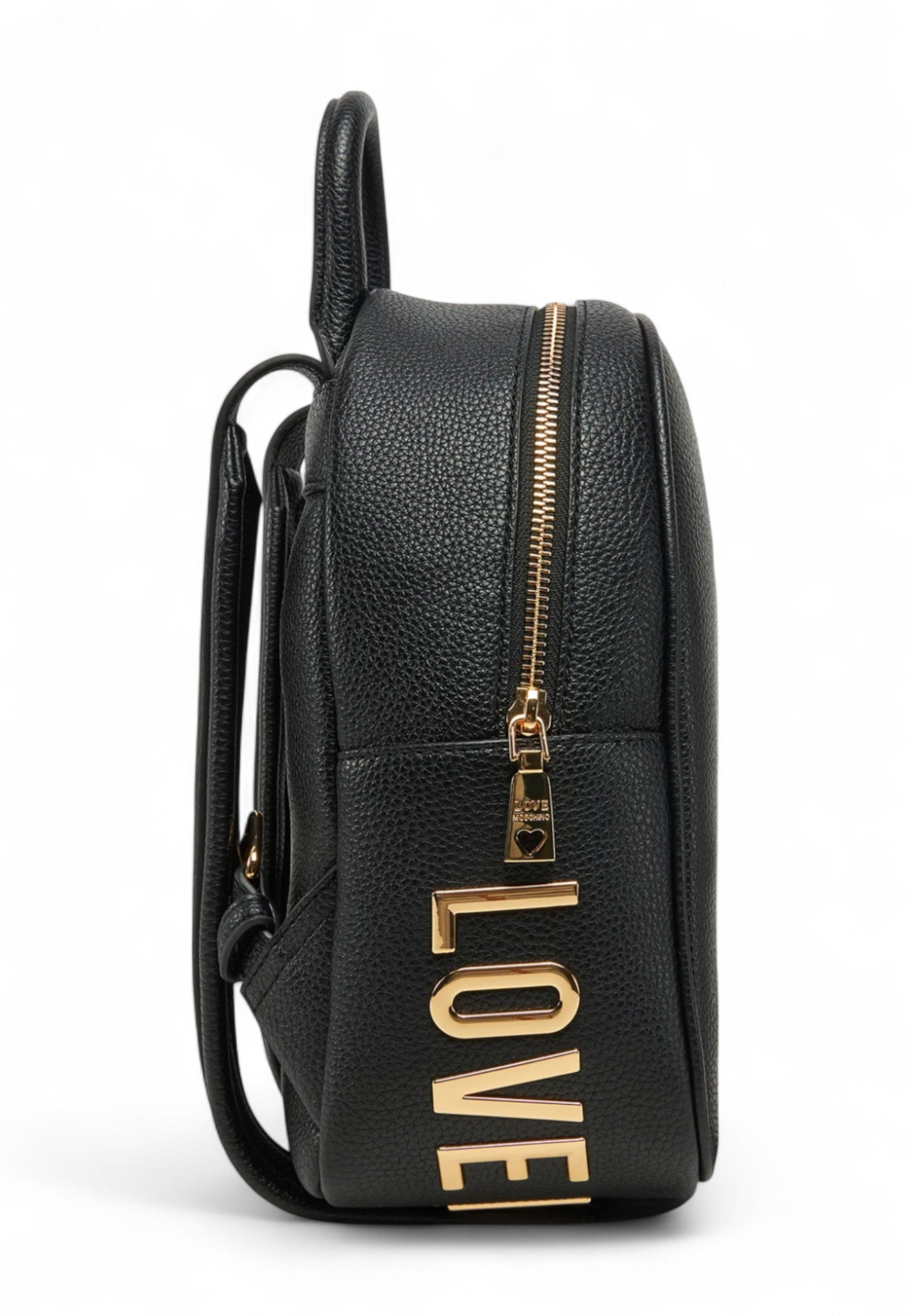 Eleva il tuo stile quotidiano con questo zaino chic e compatto di Love Moschino. Realizzato in ecopelle martellata nera di alta qualità, questo zaino unisce funzionalità e lusso discreto.