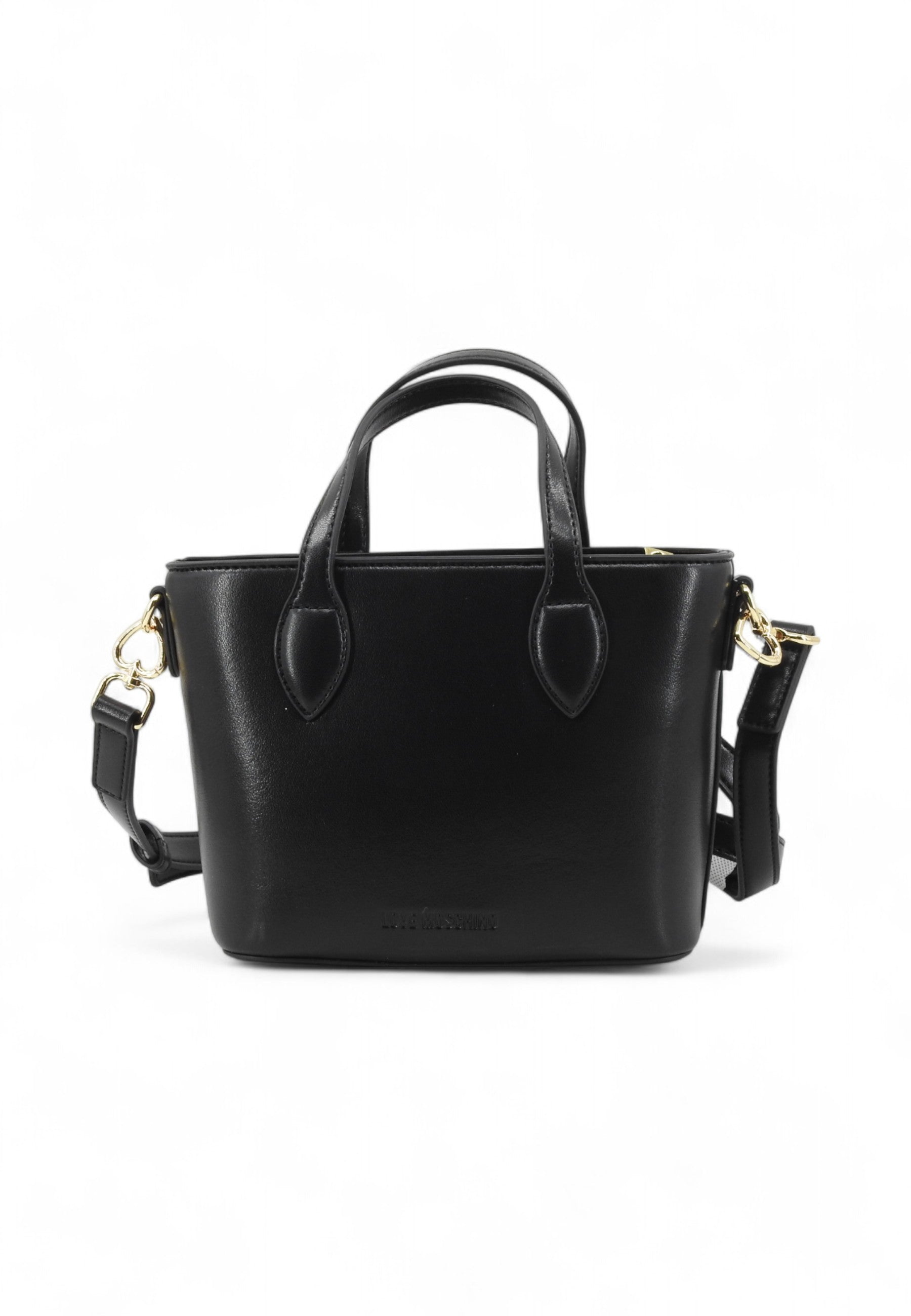 Questa raffinata borsa Love Moschino è l'accessorio perfetto per aggiungere un tocco di eleganza giocosa a qualsiasi outfit. Realizzata in ecopelle nera liscia di alta qualità, presenta un design strutturato e compatto, ideale per le tue esigenze quotidiane.