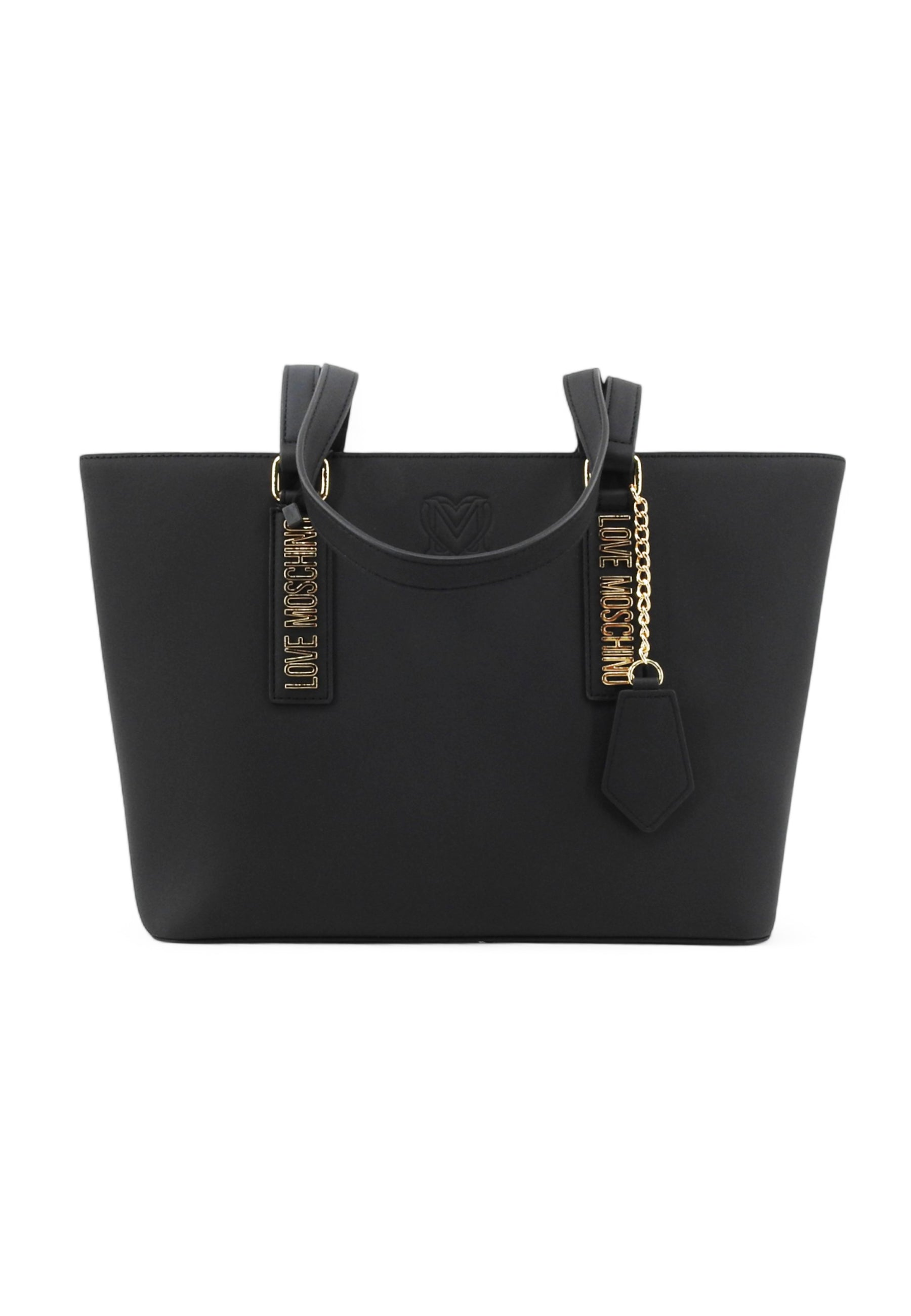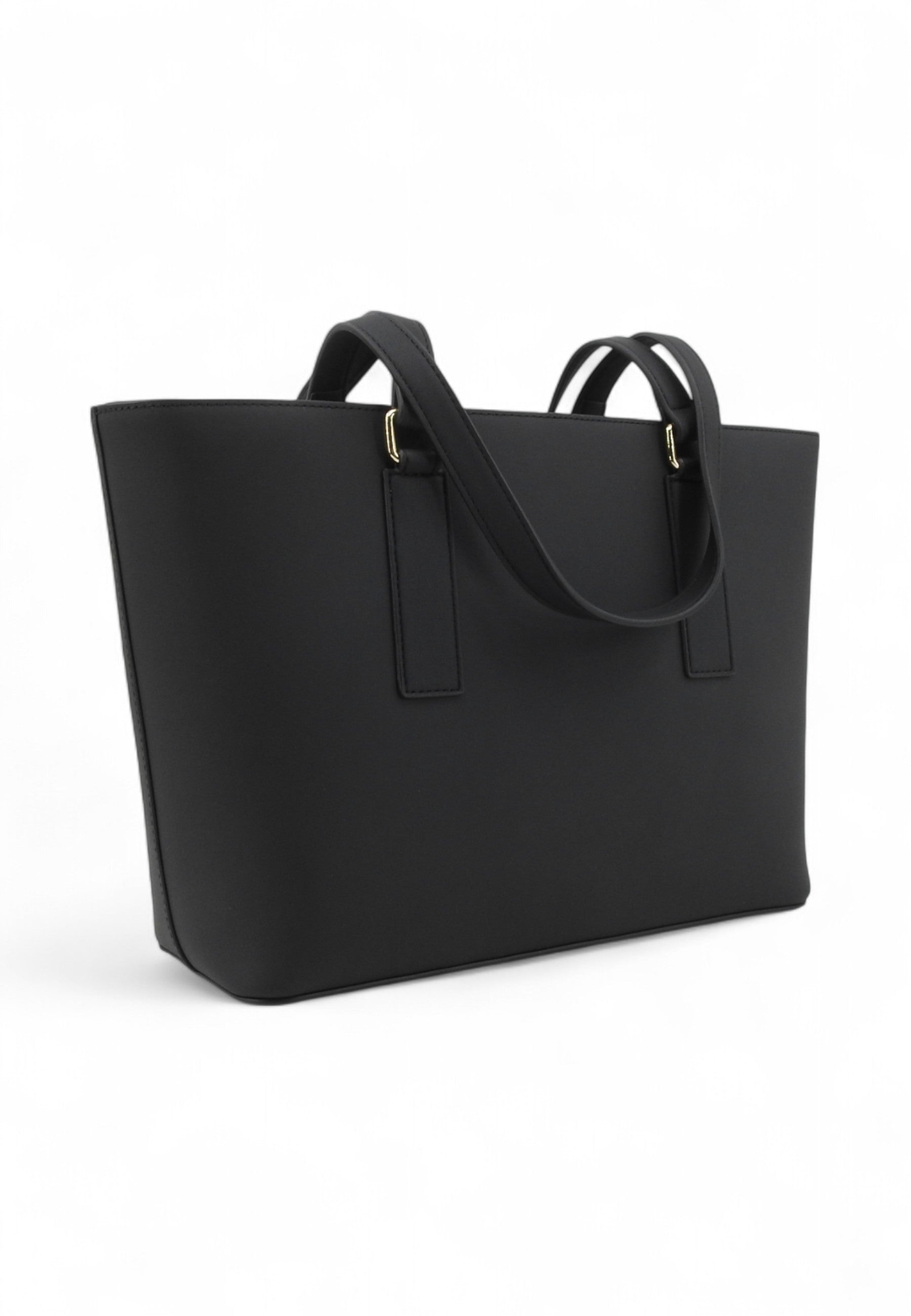 Borsa da donna in ecopelle con logo frontale, doppio manico e chiusura centrale con zip, interni foderati con la presenza di 2 tasche multiuso.