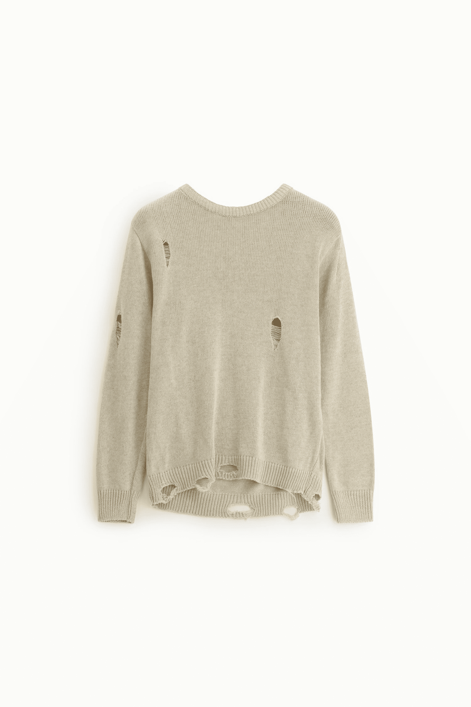 Maglione dalla linea essenziale, arricchito da dettagli vissuti e lavorazione a maglia sottile, progettato per chi ricerca uno stile distintivo e contemporaneo. Ideale come capo versatile per creare abbinamenti originali, si segnala per il bordo rifinito e la vestibilità regolare che valorizza ogni silhouette.