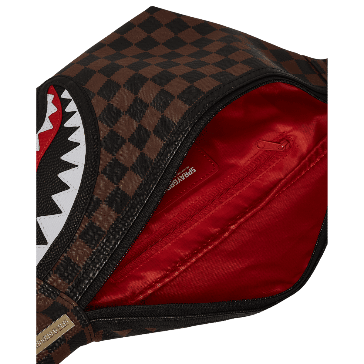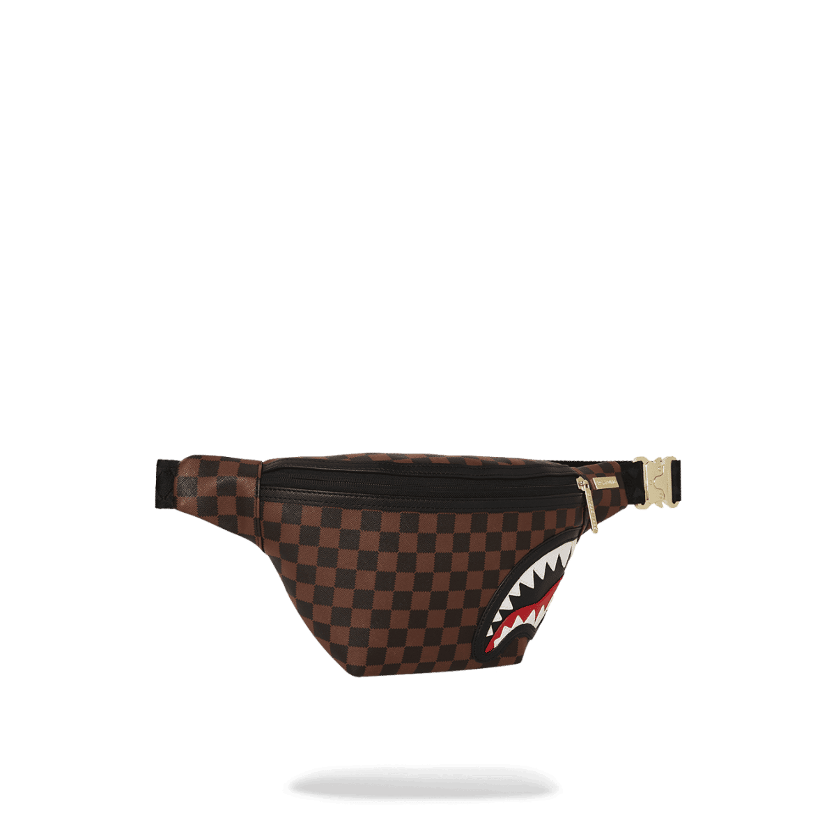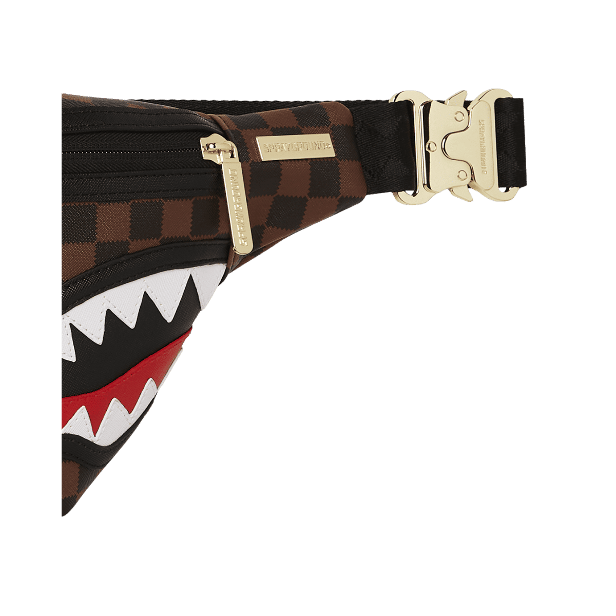 SPRAYGROUND Marsupio Sawtooth Sharks In Paris marrone per uomo e donna. Viaggia leggero ed efficiente con questa borsa a tracolla resistente ma elegante. Perfetta per telefono, portafoglio, occhiali da sole, chiavi e altri piccoli oggetti.