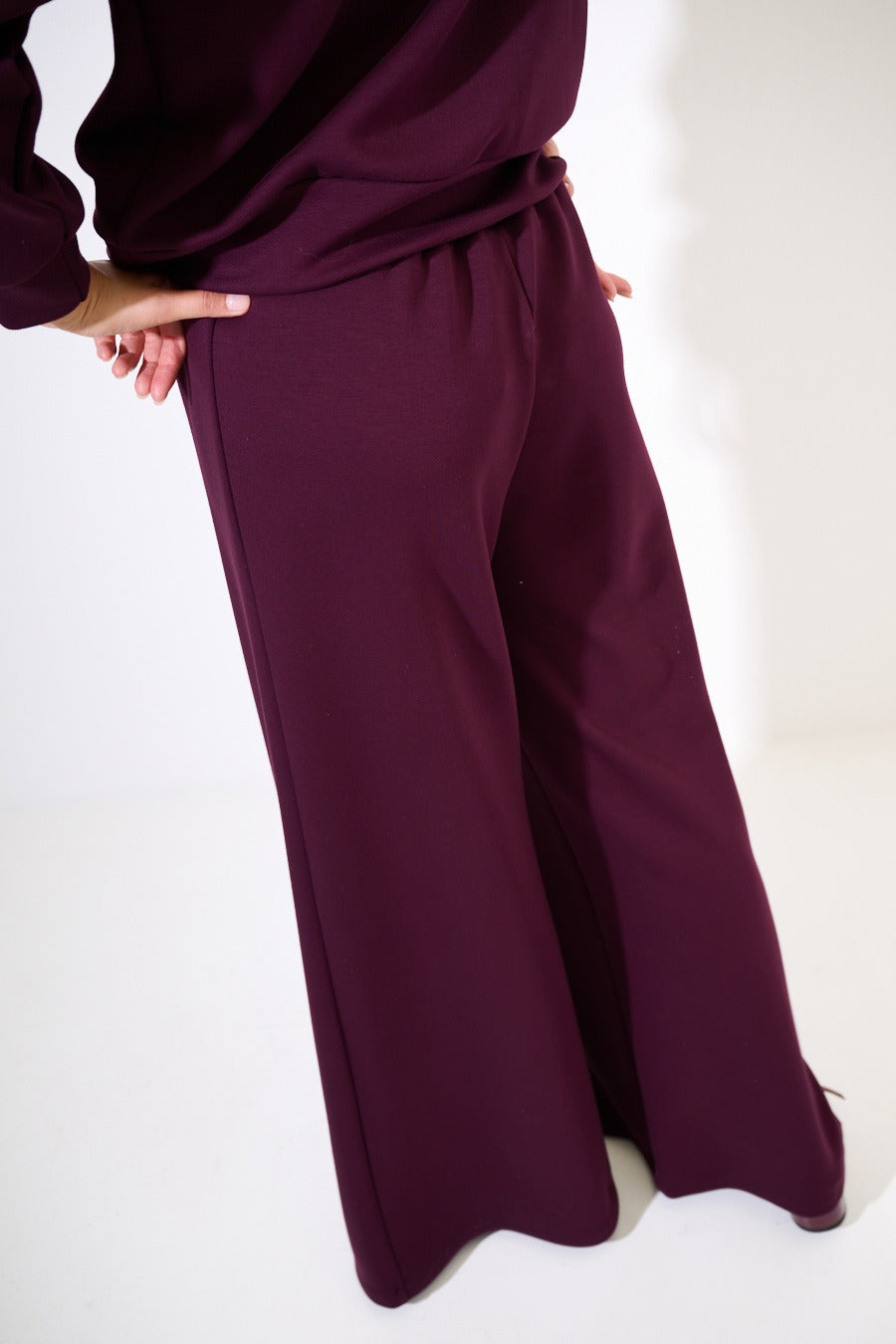 Pantapalazzo in felpa morbida con elastico e coulisse in vita.