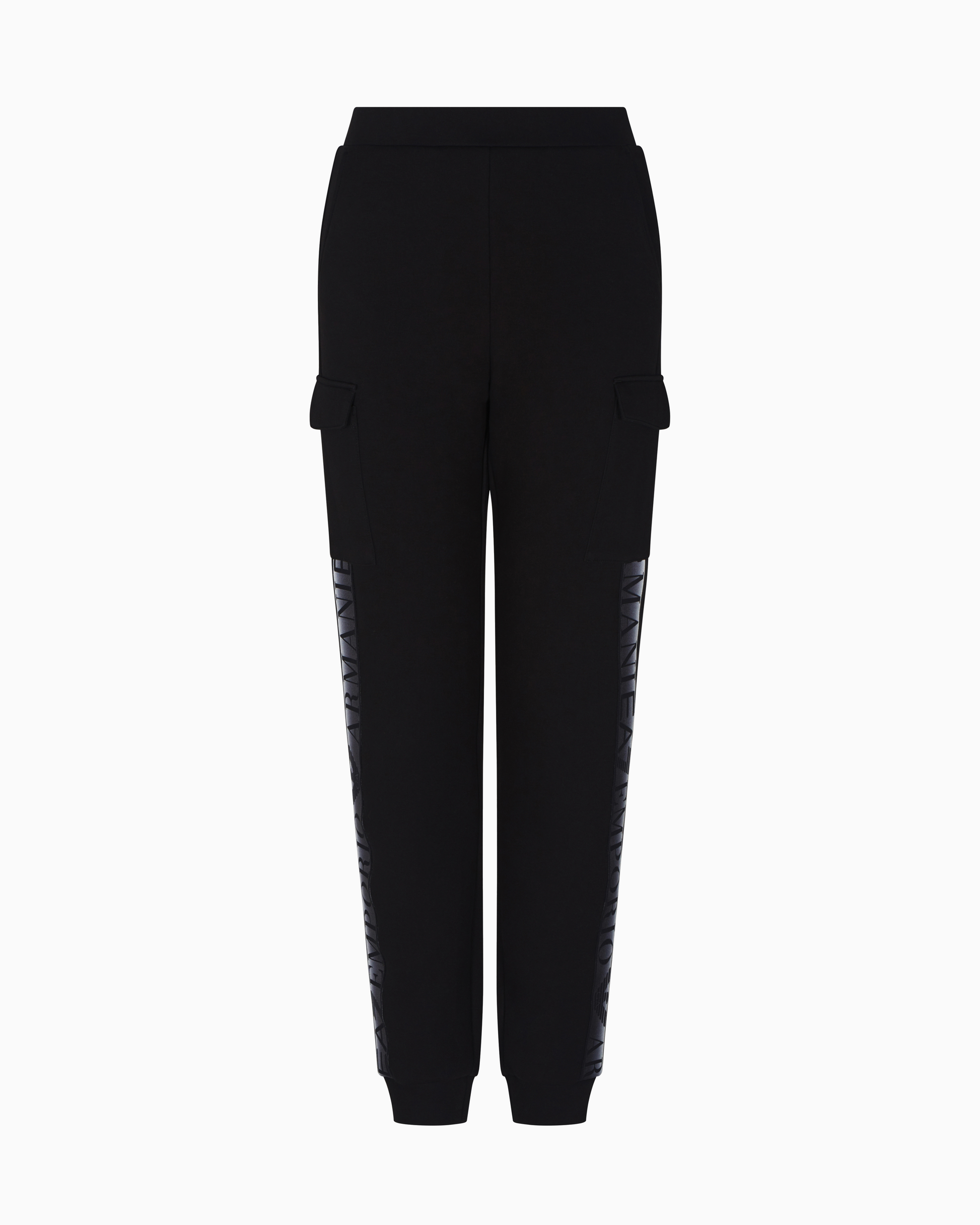 Pantaloni jogger modello cargo, personalizzati dal dettaglio con logo tape lungo il profilo delle gambe. Il modello provvisto di pratiche tasche applicate con aletta, è realizzato nell'innovativo tessuto tecnico Natural VENTUS7, composto da un mix di fibre naturali e sintetiche che permette di regolare la temperatura corporea espellendo il sudore come vapore acqueo, lasciando al tempo stesso una sensazione di comfort e morbidezza sulla pelle, grazie alla presenza delle fibre di cotone.