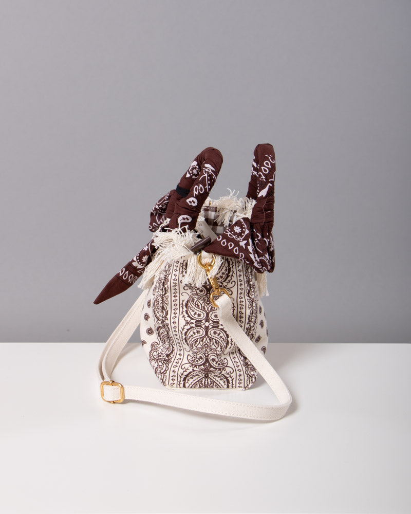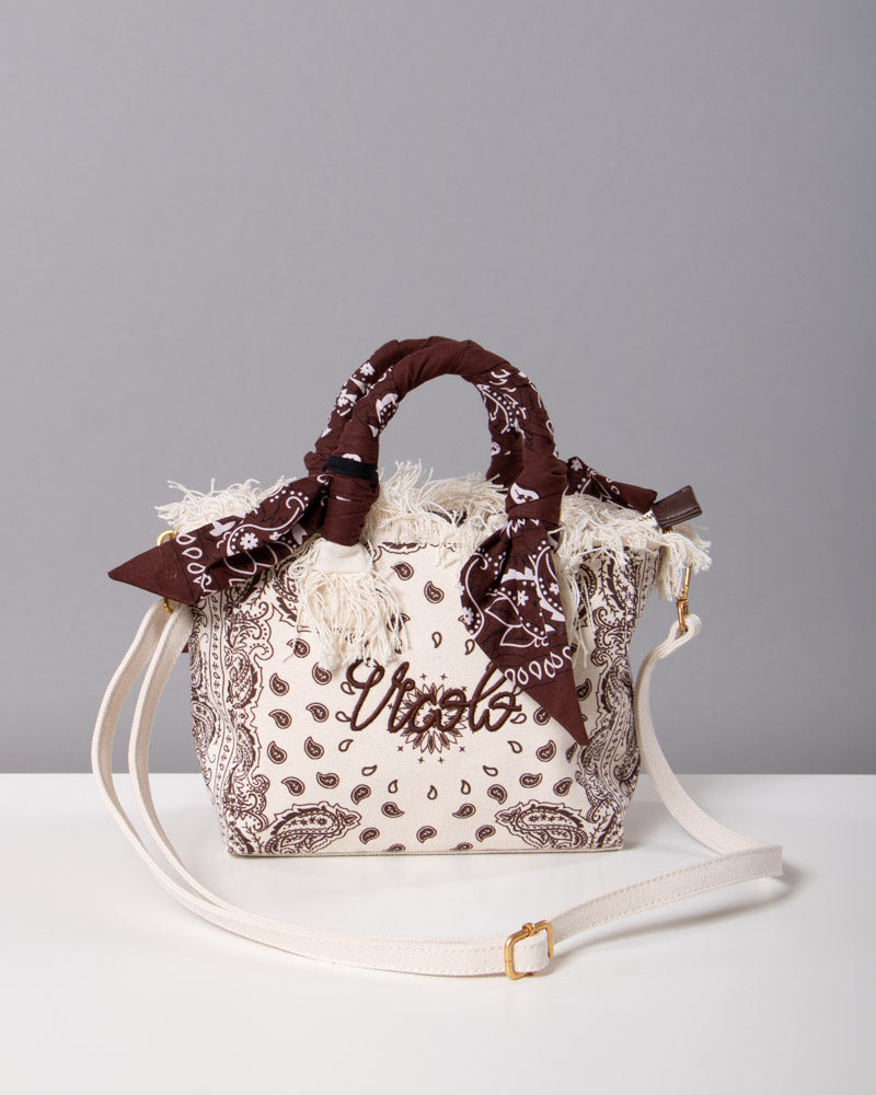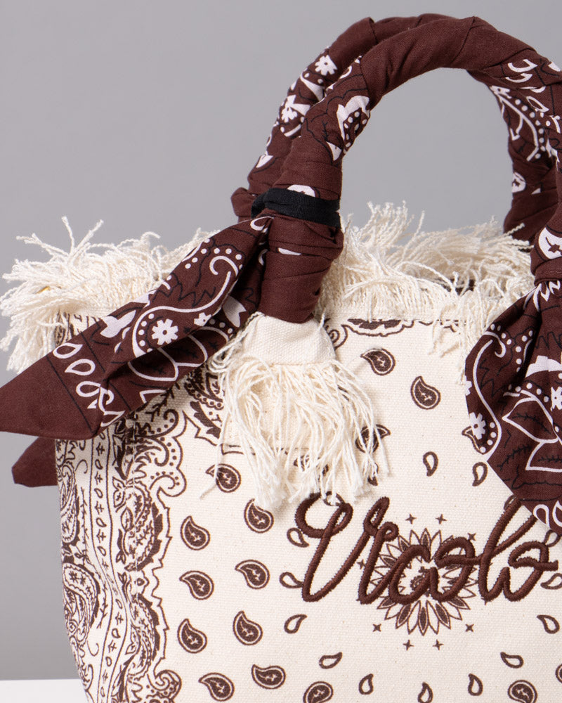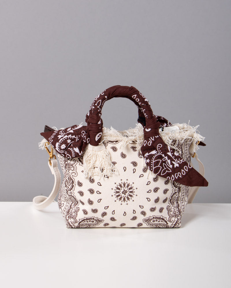 La borsa è piccola. Manici rigidi. Con foulard. Stampa bandana all over. Logo frontale ricamato. Tracolla removibile.