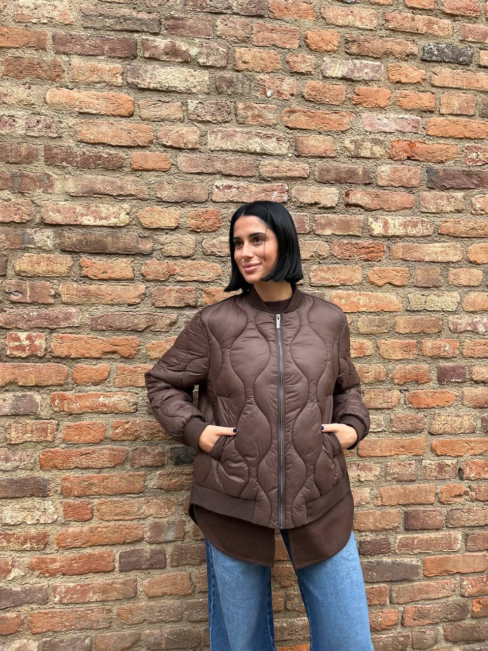 Caldo, versatile e dal design ricercato: questo piumino imbottito trapuntato unisce funzionalità e stile. Dotato di chiusura con zip e comode tasche laterali, è impreziosito da spacchi laterali che donano libertà di movimento e da un originale inserto inferiore in panno che fuoriesce, creando un raffinato effetto a doppio strato. Perfetto per affrontare la stagione fredda con comfort e carattere.