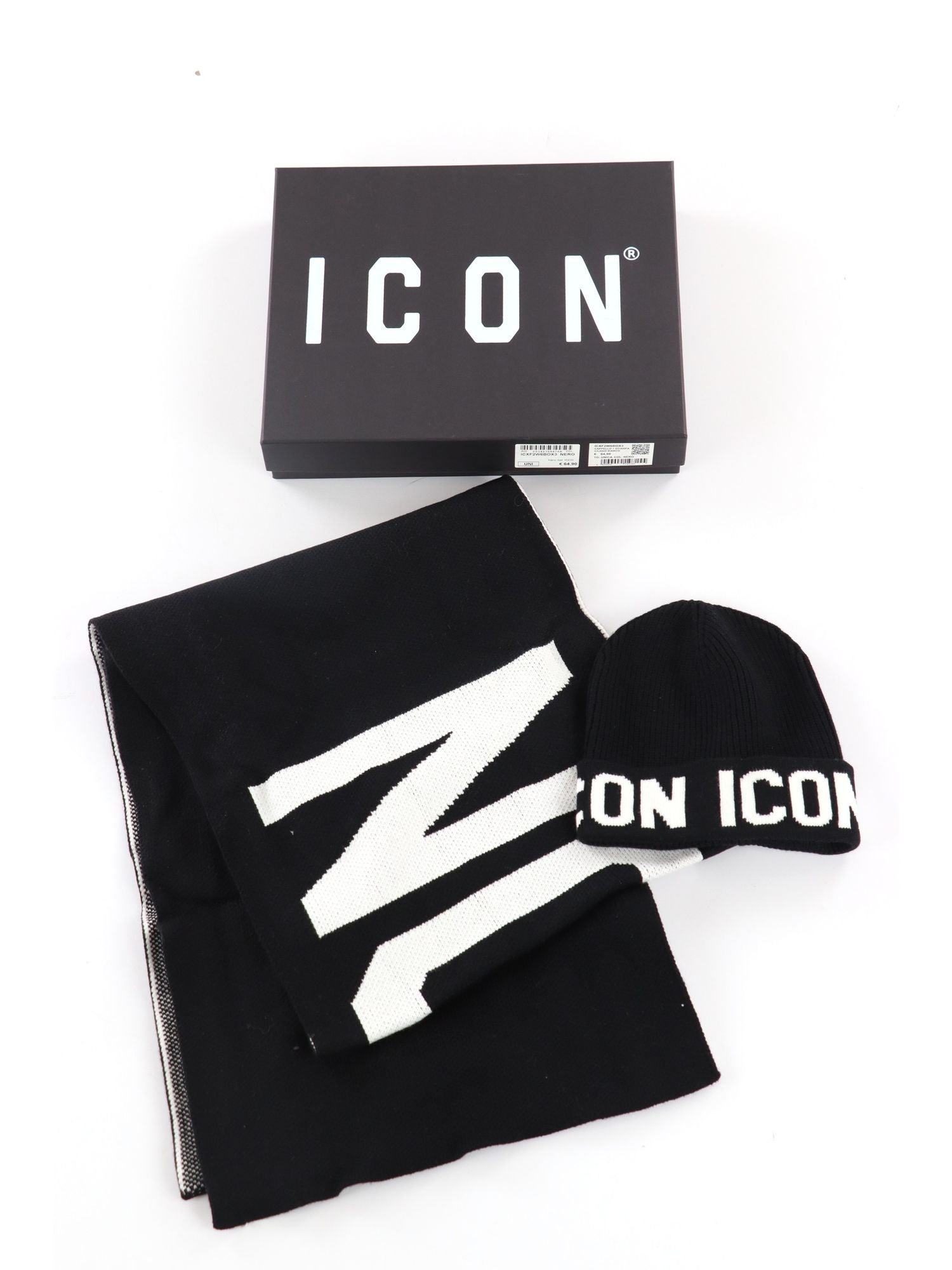 Set sciarpa e berretto in lana con marchio Icon in rilievo