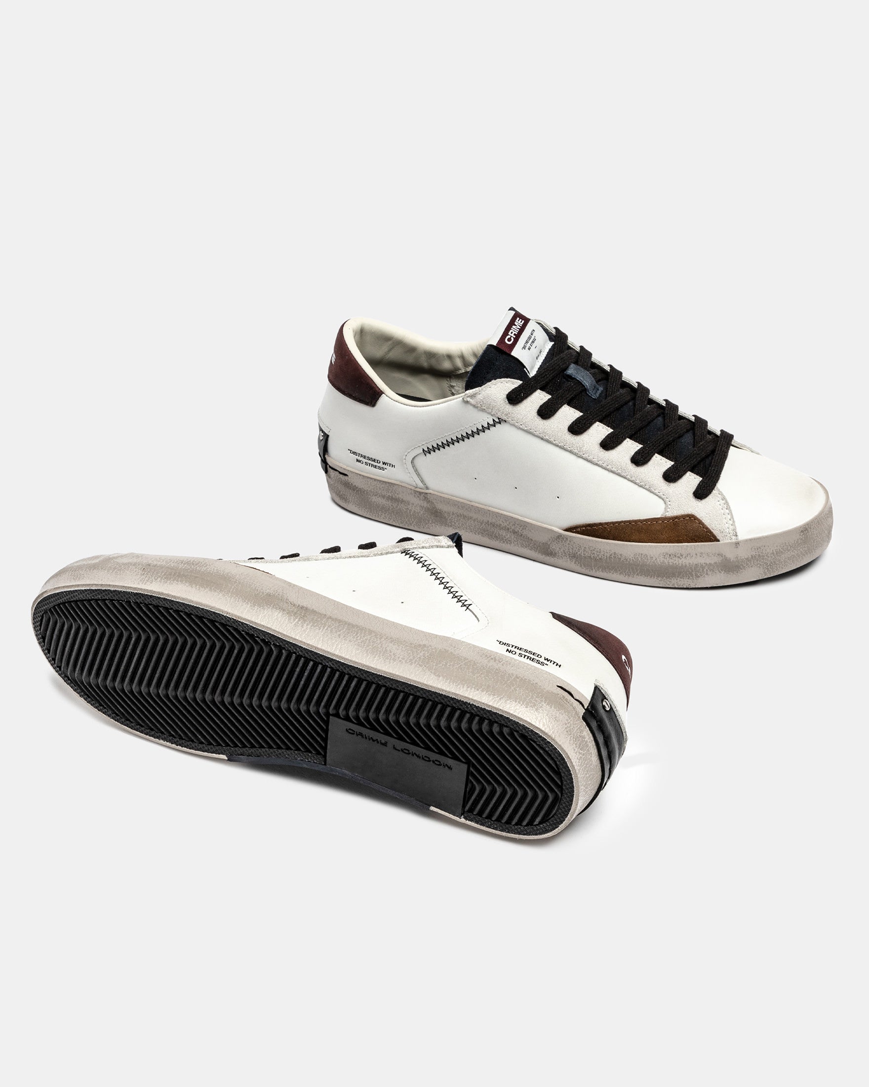 • Tomaia in pelle bianca, dettagli in suede marrone