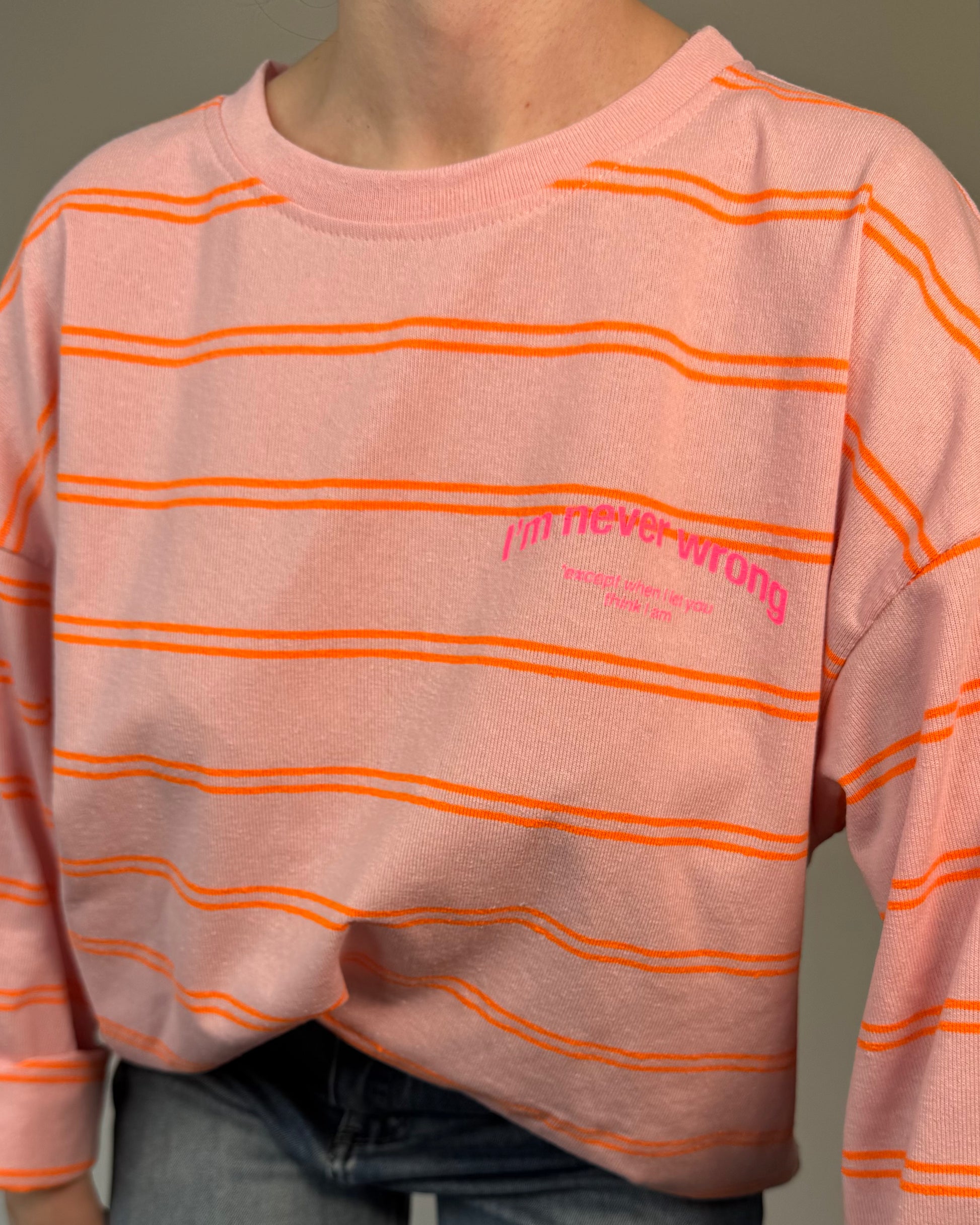 T-shirt girocollo leggermente over a righe con scritte a contrasto.