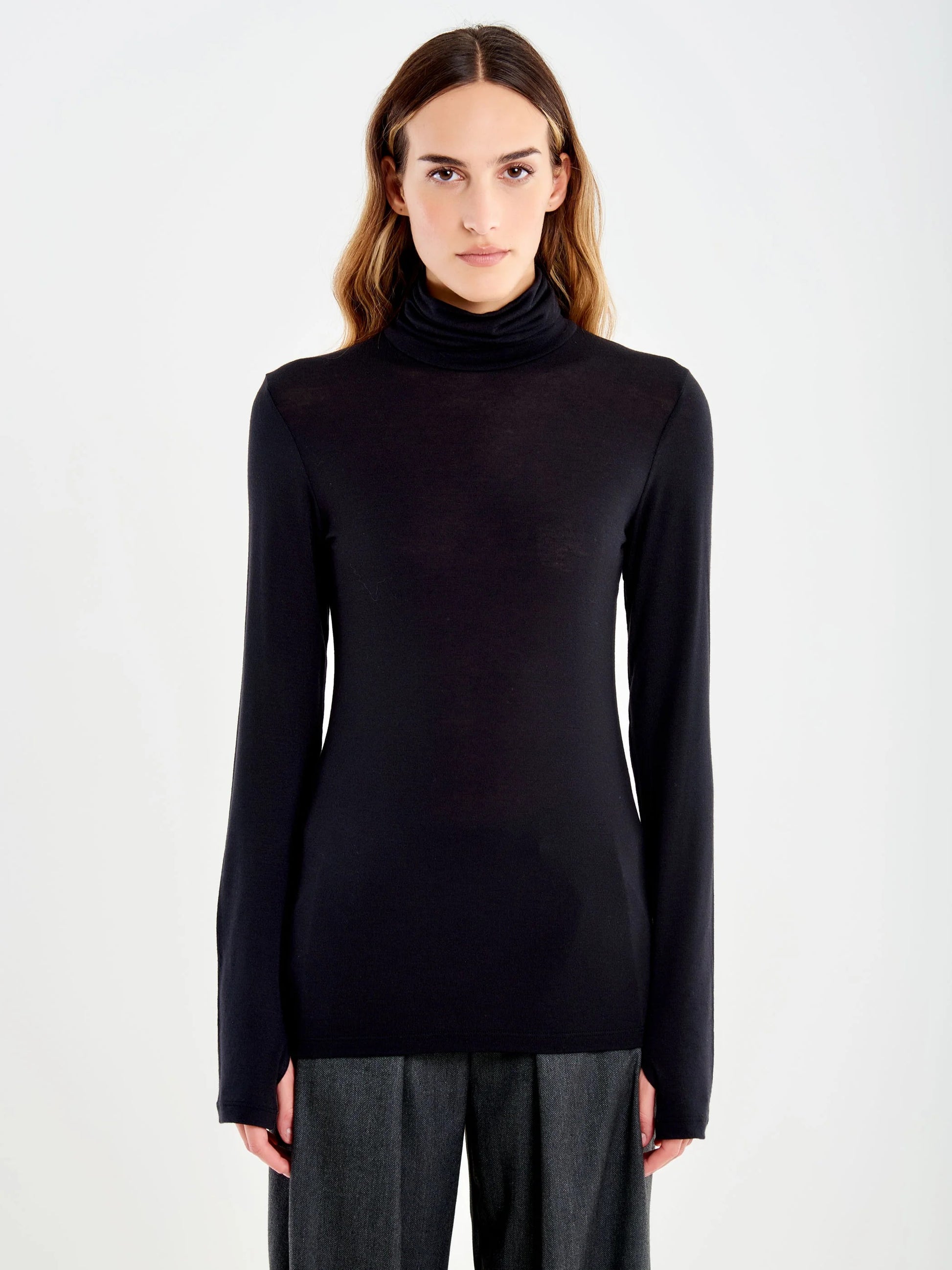 T-shirt dolcevita maniche lunghe con apertura per pollice.
