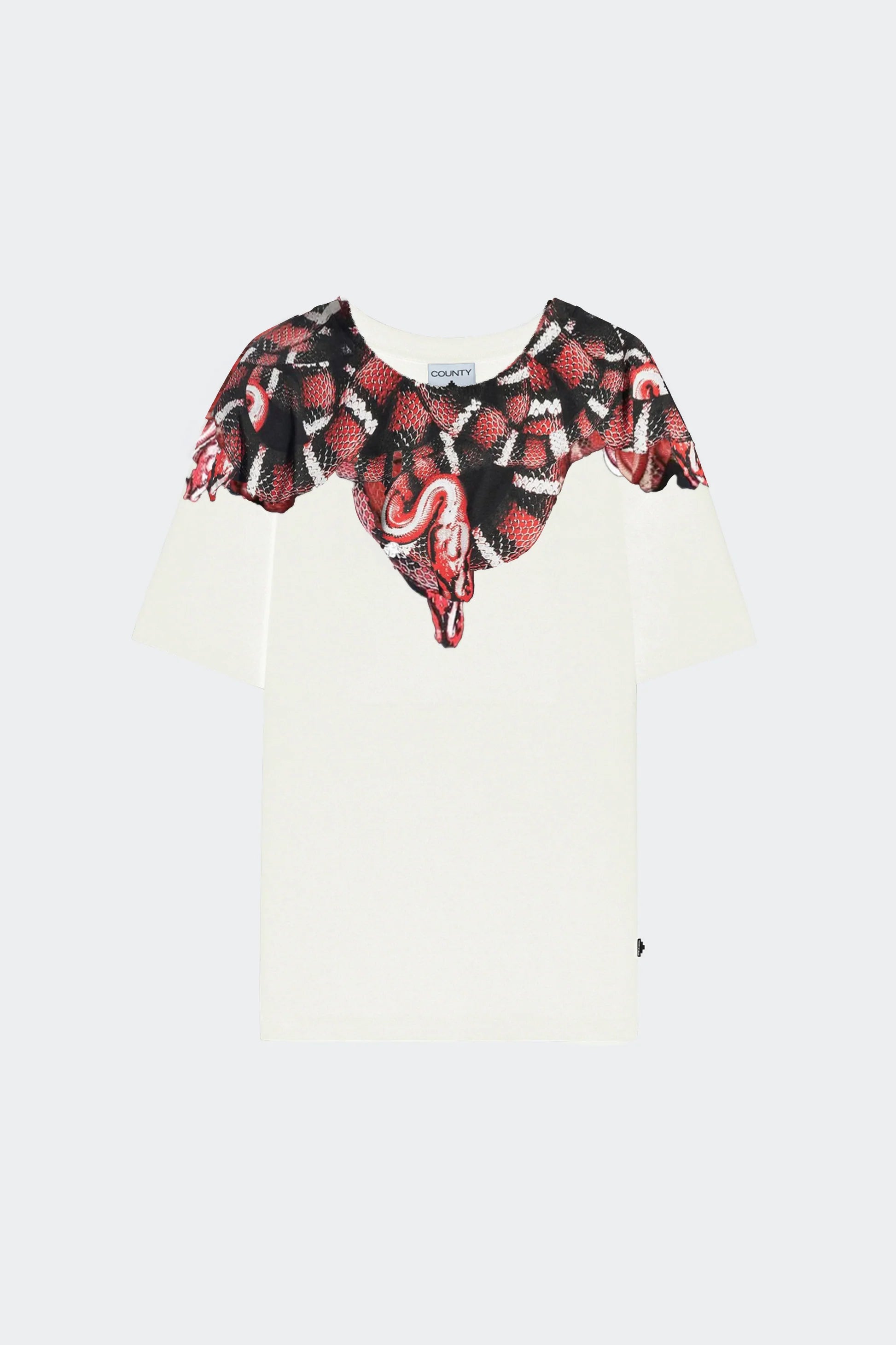 T-shirt in 100% cotone dal fit morbido. Caratterizzata dall’iconica stampa “snake COUNTY OF MILAN” continua su fronte e retro. Label 3D applicata sul fianco.