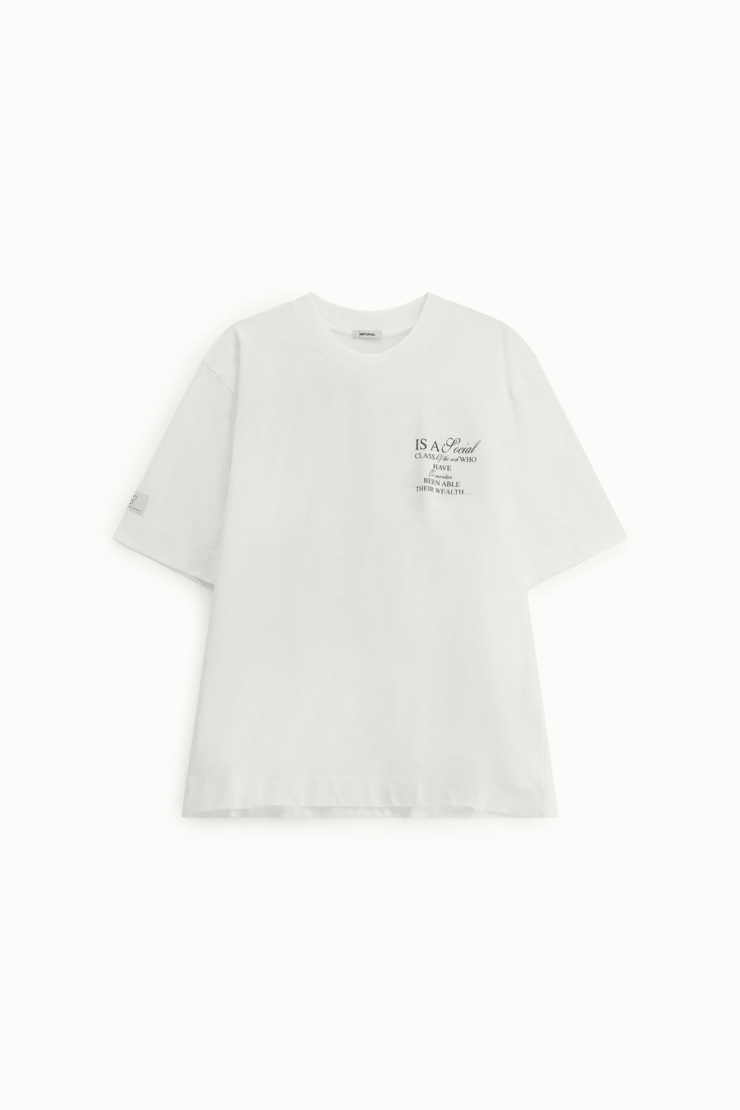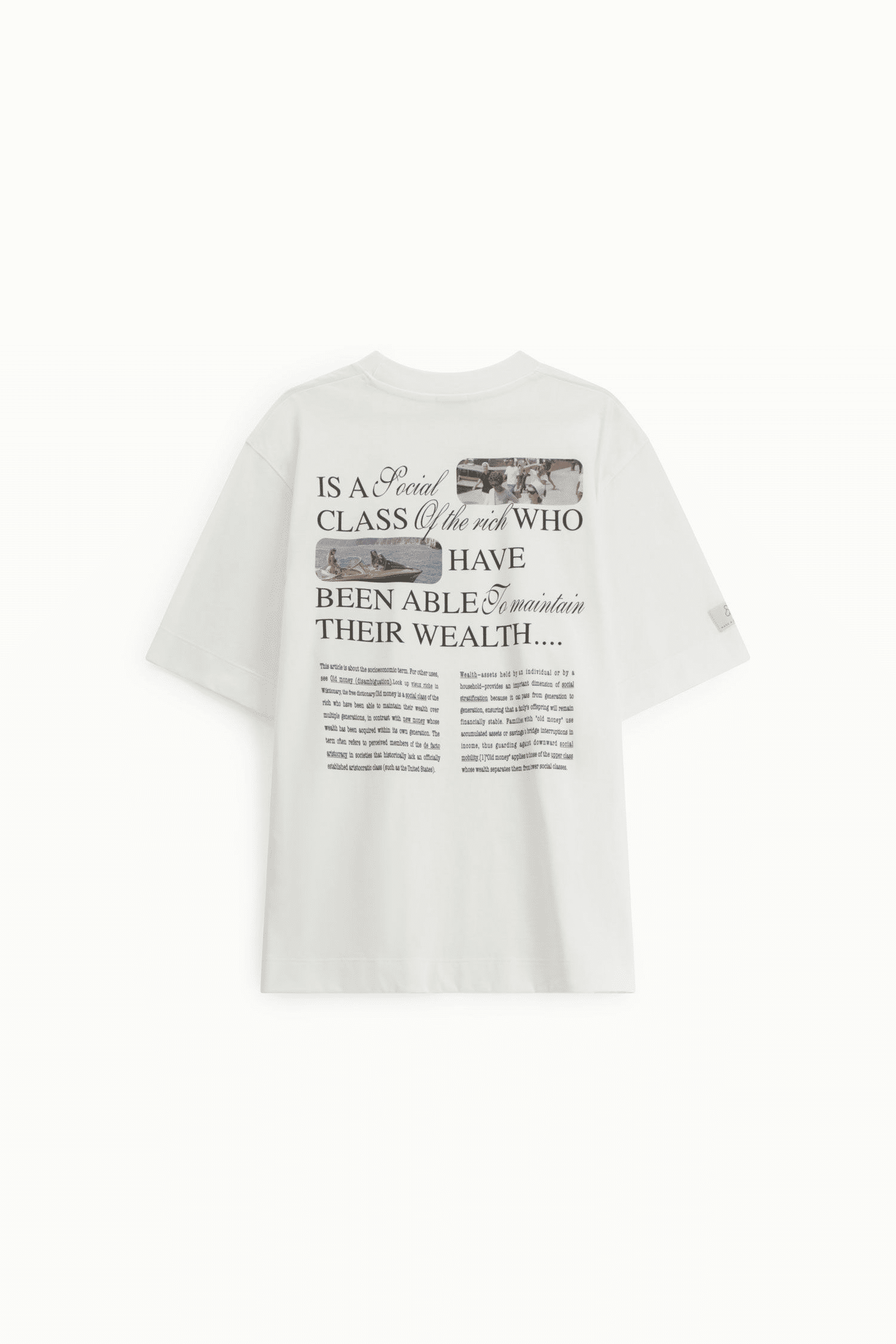 T-shirt a maniche corte dal taglio contemporaneo, caratterizzata da una stampa testuale e fotografica sul retro e sulla parte anteriore. Offre un modo sofisticato per esprimere la propria personalità attraverso dettagli grafici distintivi, ideale per chi desidera arricchire il proprio guardaroba con proposte dal forte impatto visivo.