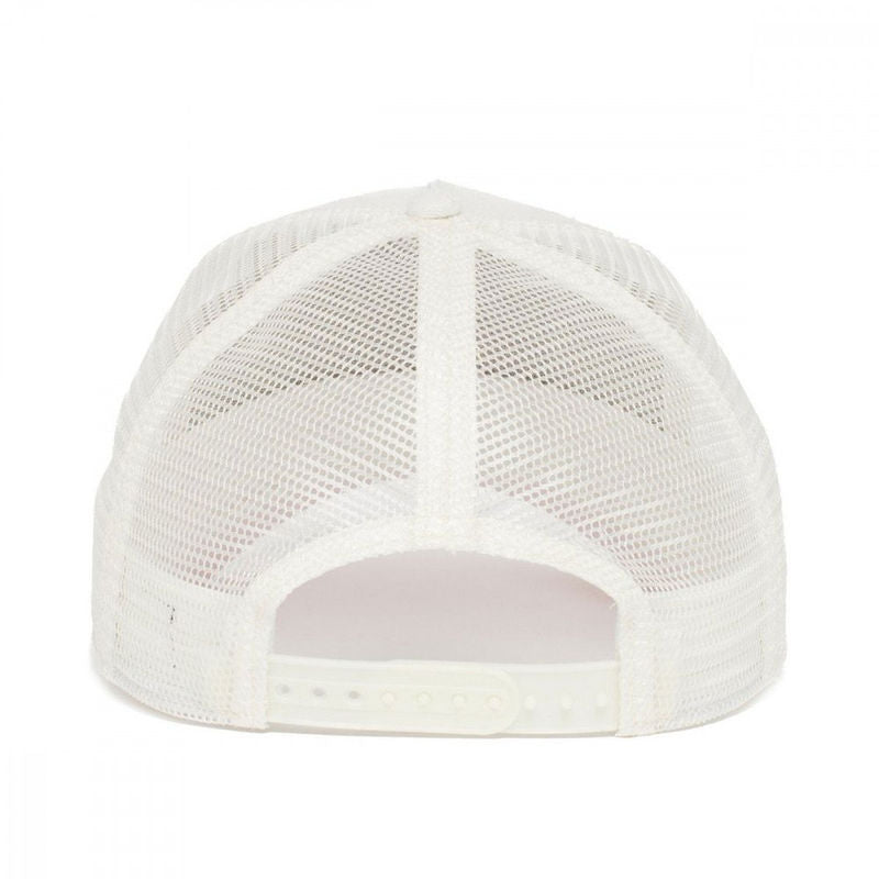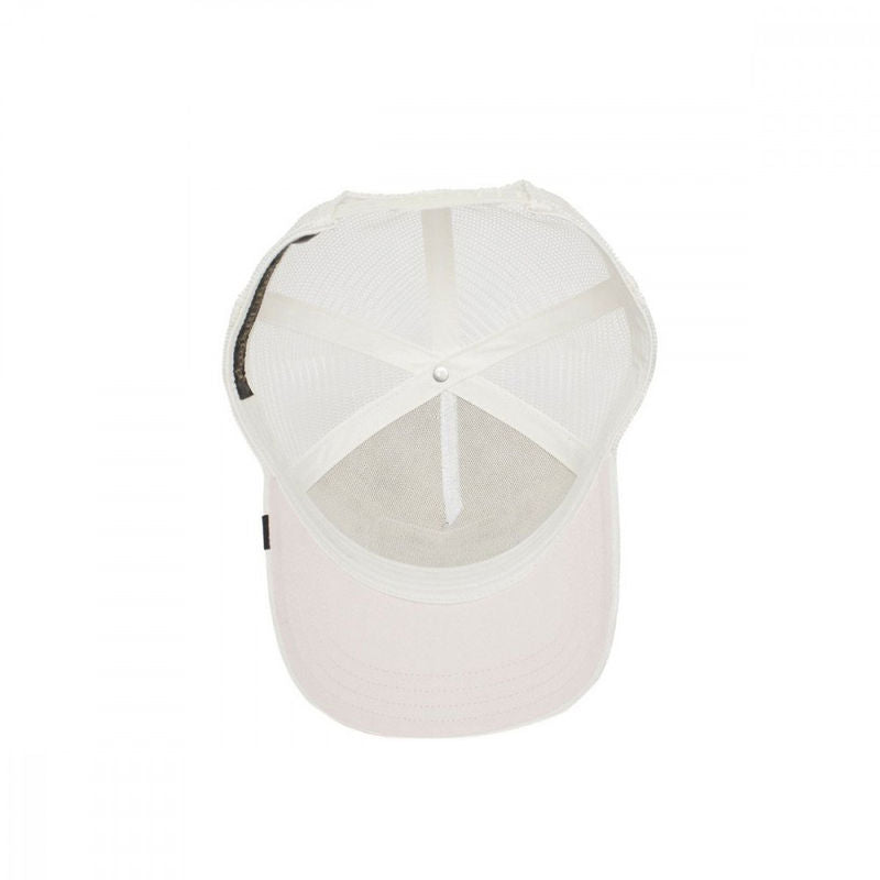 L’elemento di maggior rilievo del Trucker del marchio Goorin Bros. è l’inserto in rete posto dietro la nuca, che assicura sempre una gradevole freschezza. La larghezza del cappellino snapback, aperto dietro la nuca, è regolabile tramite fascetta con automatico per una perfetta vestibilità. La visiera ricurva è lunga 7 cm, mentre l’altezza della calotta è di 11 cm.