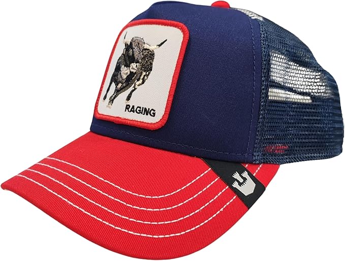 Cappellino trucker visiera. Presenta un toro nero con scritta "RAGING".