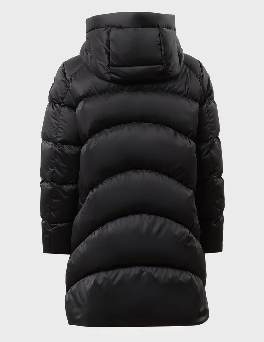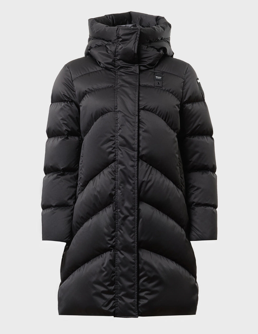 Piumino idrorepellente impunturato a linee curve orizzontali più alte al centro. Capo dai colori fashion, dal collo alto e dall’ imbottitura naturale leggera, calda e non ingombrante.