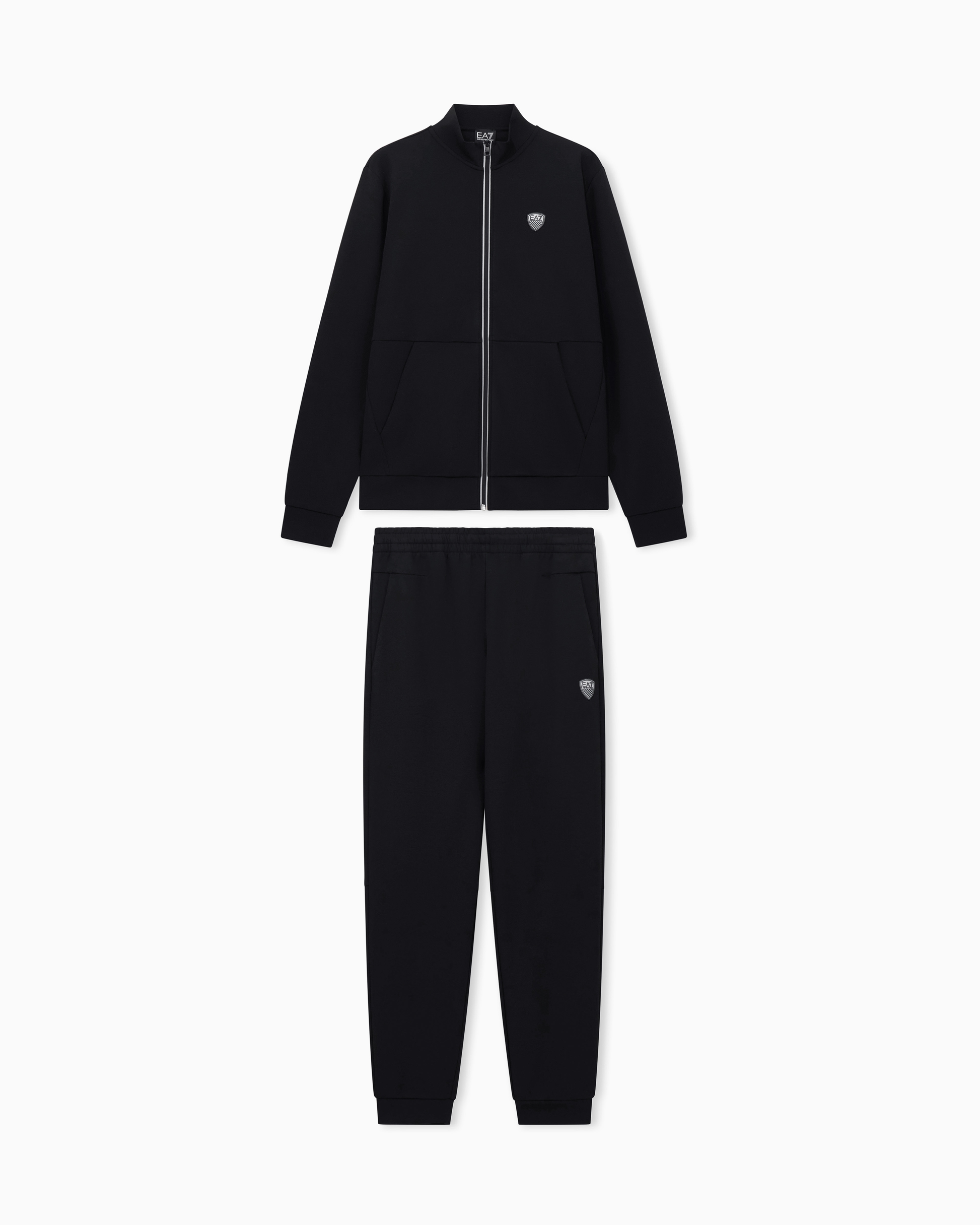 Tuta realizzata in misto viscosa stretch, dalla vestibilità regular e confortevole. Il modello si compone di una felpa con collo montante e chiusura con zip e un pantalone jogger con coulisse, entrambi personalizzati dal patch con logo scudetto EA7. Il capo è parte della proposta Premium Shield, una linea caratterizzata da eleganza, tessuti preziosi, attenzione al dettaglio. Il logo EA7 che personalizza i capi è declinato in un piccolo scudetto con effetto metal; un dettaglio essenziale perfetto per chi ricerca un look minimal ma alla moda.