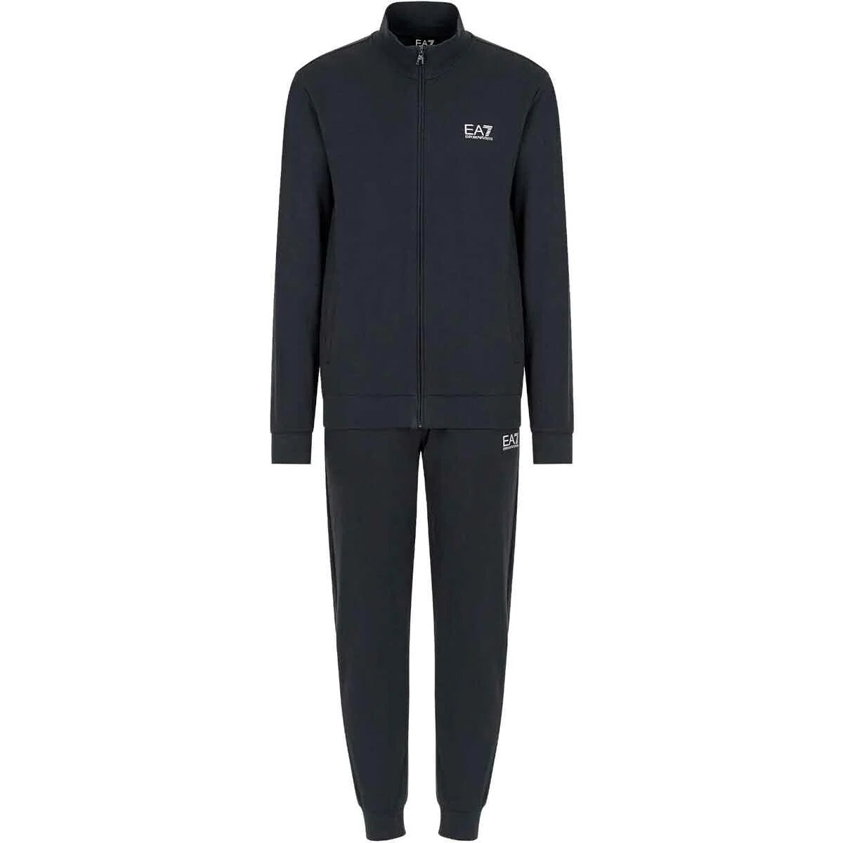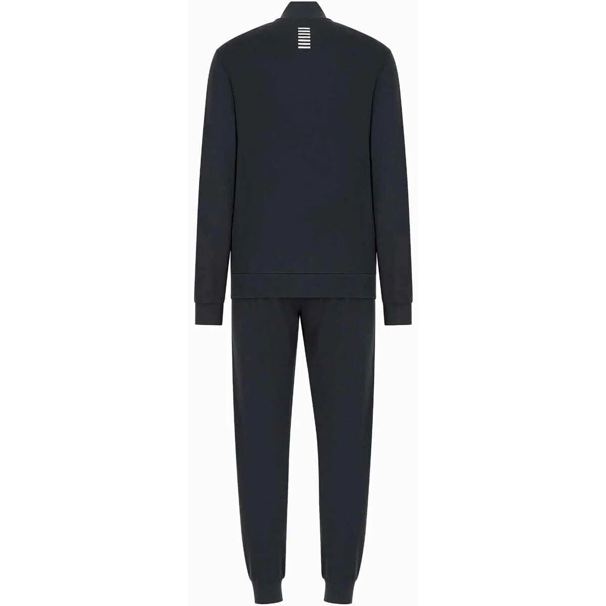 Logo EA7: discreto ma distintivo, applicato sul petto/felpa e sul pantalone per un tocco di riconoscibilità del brand.